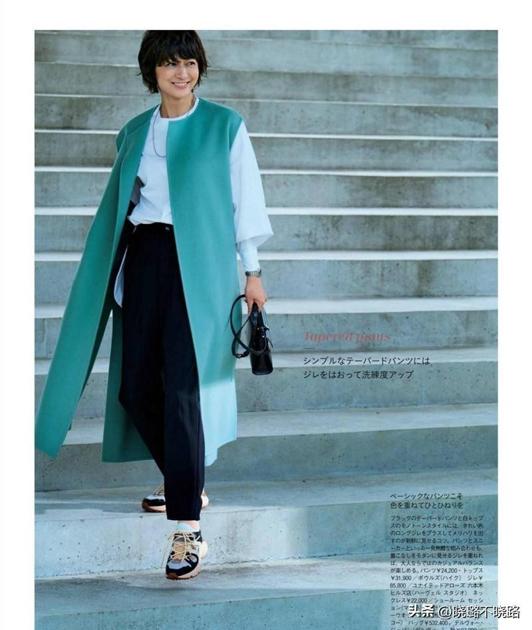 這種指的是外套和內搭顏色的結合,以及下半身單品的顏色搭配。每一個部分都清晰明瞭,我們能看到很鮮明的顏色分類,學習福岡佳子三色簡約搭配打造高級一身就非常加分。