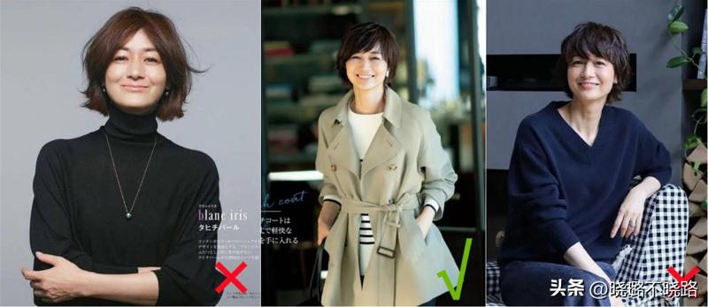 其實福岡佳子的額頭是比較高且飽滿的,這種額頭具備優勢,不完全露但是有些許露額的展示方式是最nice的,我們可以借鑑富岡佳子本人來參考到自己身上。
