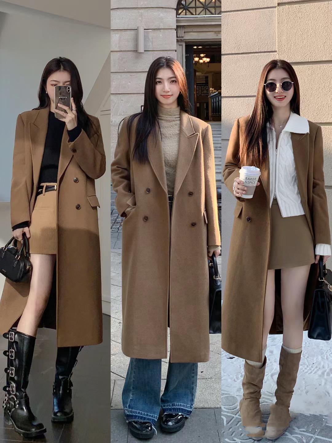 一件利落大氣的棕色大衣,我們可以疊搭基礎款的半高領打底衫、也可以疊搭翻領的針織衫。可以配高腰的毛呢超短裙、也可以配高腰的微喇牛仔褲,時髦洋氣又顯高的組合,真的很惹眼。