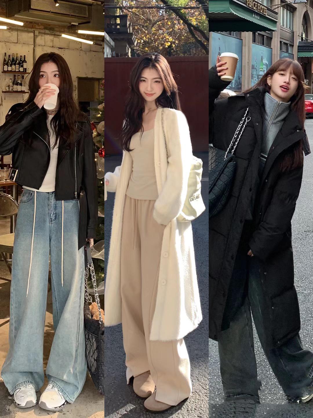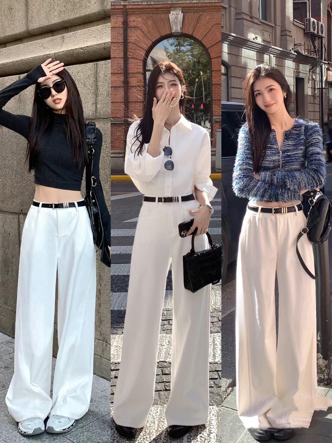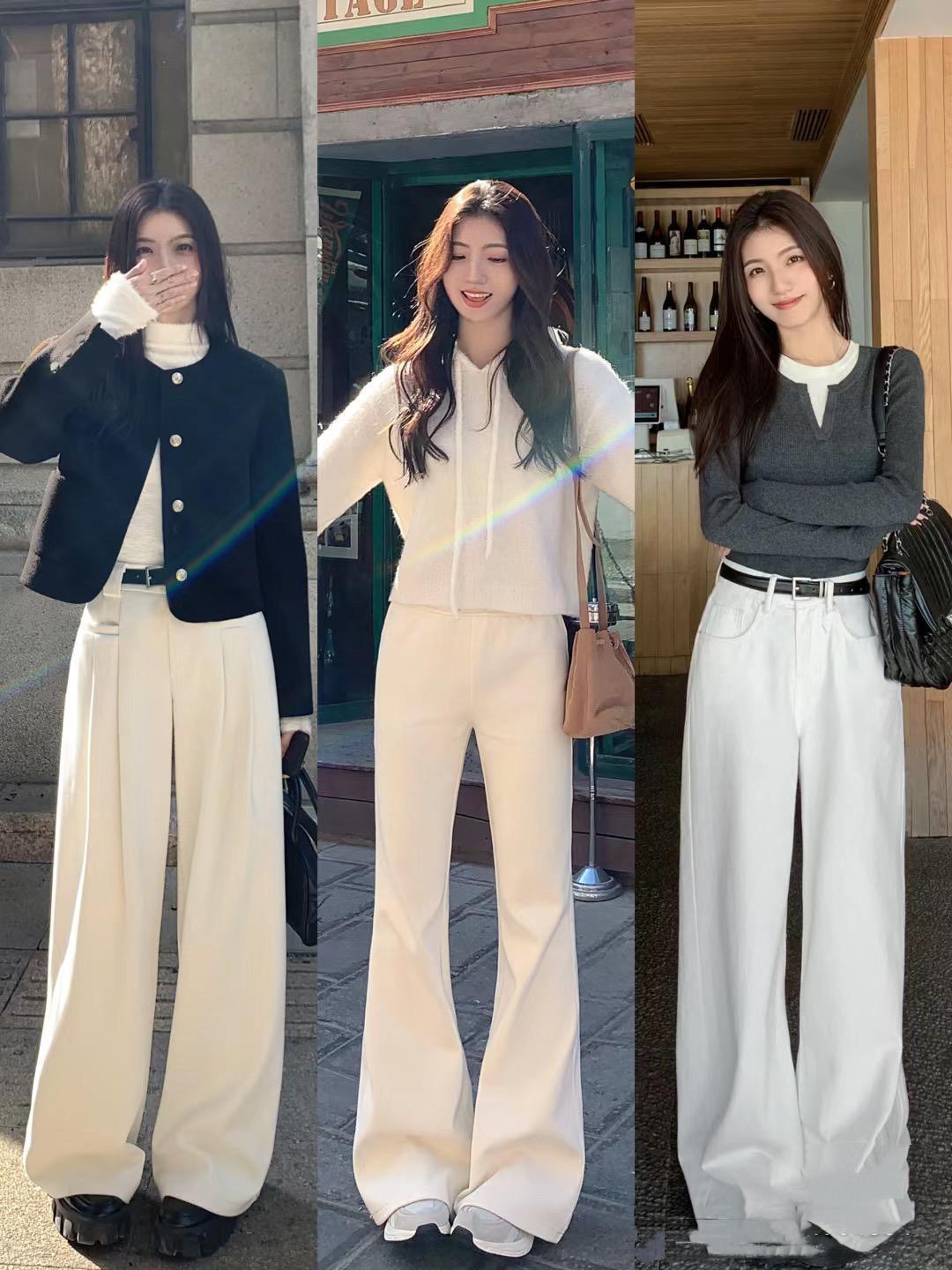高腰線的呈現,在韓系穿搭中也是至關重要的。不管是打底衫、針織衫、還是衛衣或者小外套,我們可以配高腰的長褲,呈現出一種大長腿的既視感。