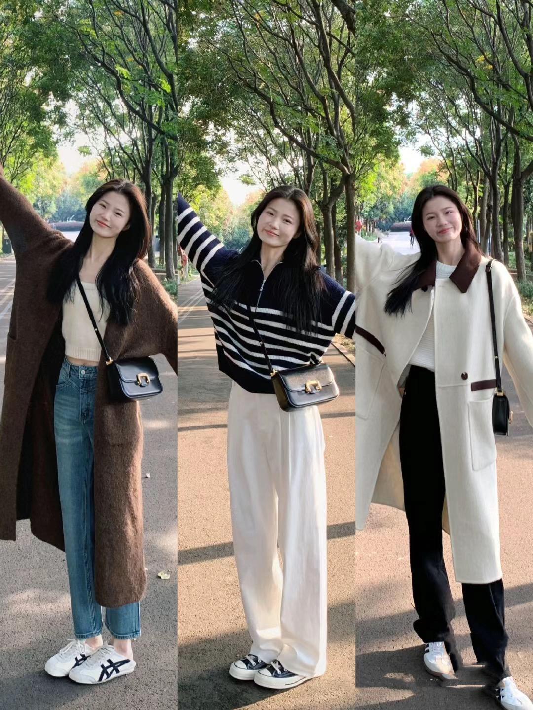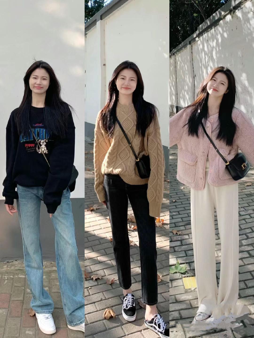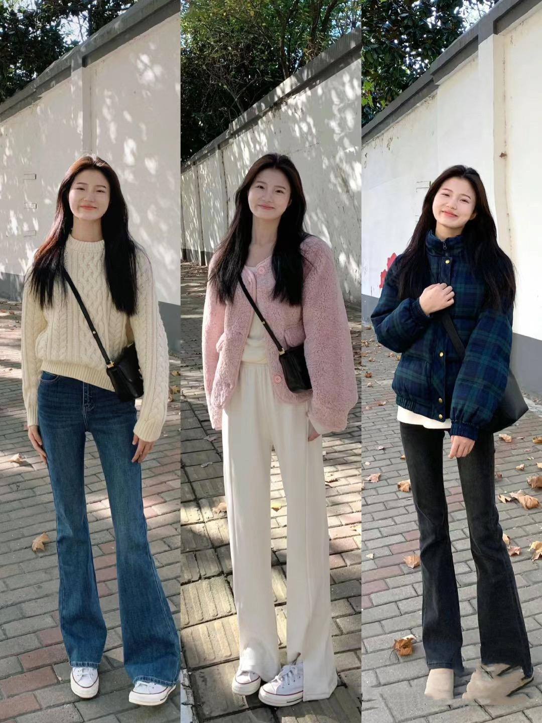 對於小個子的女生來講,最經典不過時的穿衣方式,就是上短下長的穿搭組合了。短款的針織衫、或者打底衫、以及羽絨服,都可以配高腰的長褲。