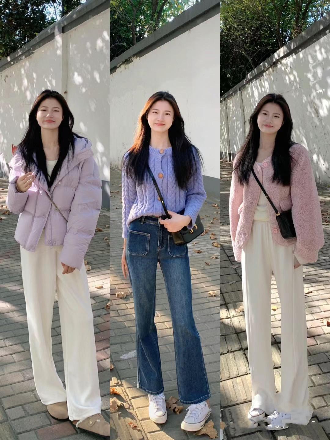 新年穿搭,可以選擇這種粉紫色的短款羽絨服。我們只需要隨意的配配一條高腰的直筒褲,不管是米白色還是白色的直筒褲,都更加溫柔保暖還特別的顯腿長。