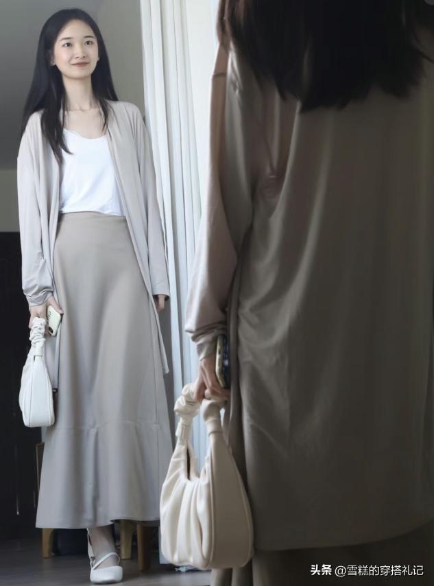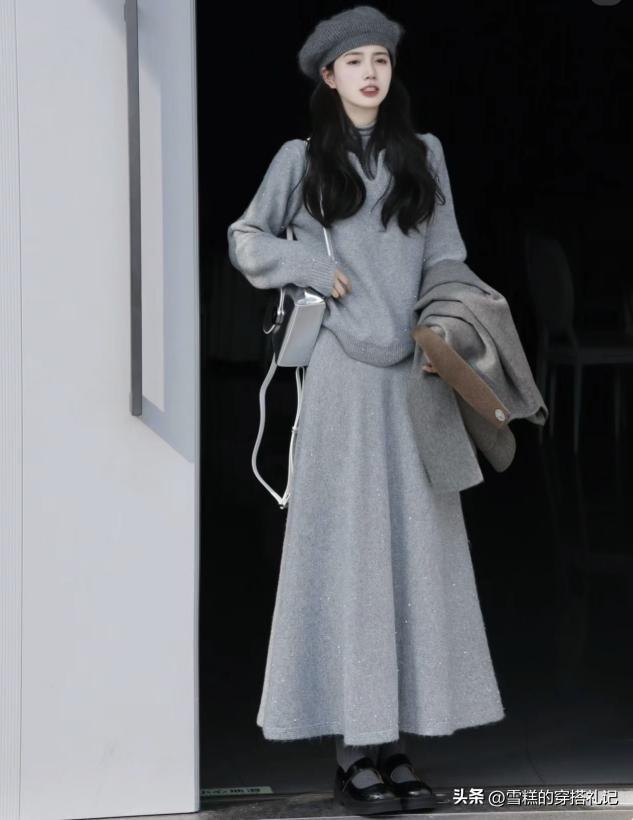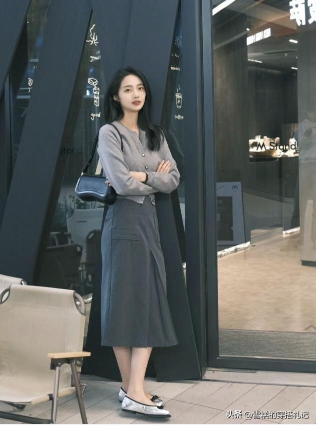 灰色這一款顏色搭配照樣可以穿出來非常優雅又溫柔的視覺效果,那麼建議大家如果想要將 格蕾系穿的更加具有溫柔感一些的話,搭配的顏色還是要建議各位可以選擇簡約感設計的長裙,例如像直筒裙或者是百褶裙這一類簡約感的設計,並且垂感較重一些。