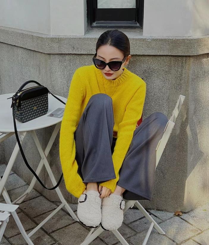 進入秋冬季節,柔軟溫暖的毛衣最合適了,與闊腿褲搭配,既溫暖又展現出從容的態度。