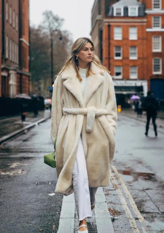 還有這種長款的羊絨大衣,穿起來很有範還不失氣場,保暖的同時還不失慵懶,小個子女生若選擇這種長款毛絨大衣的話,顏色切忌入手深色,會將個子壓得更矮。
