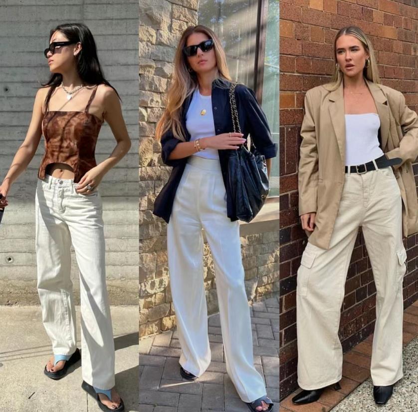 白色闊腿褲穿起來顯瘦效果很贊,特別適合微胖、腿粗的身材,注意整體配色不要超出三種,要不然看起來就會顯得很雜亂。