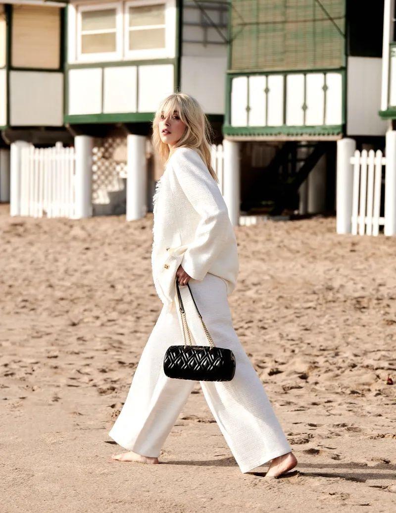 也可以選擇同色系的穿搭,減少出錯率又能打造出高級感。建議選擇不同亮度的白色,這樣可以避免沉悶與死板,增加層次。
