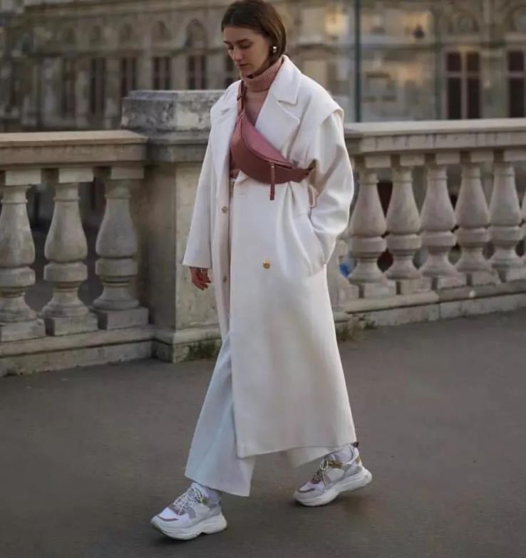 白色長大衣+白褲子,顏色一致,輕鬆穿出高級感,腳下的鞋子若再配白色的話,在視覺上很好延長腿部線條,顯高挑。