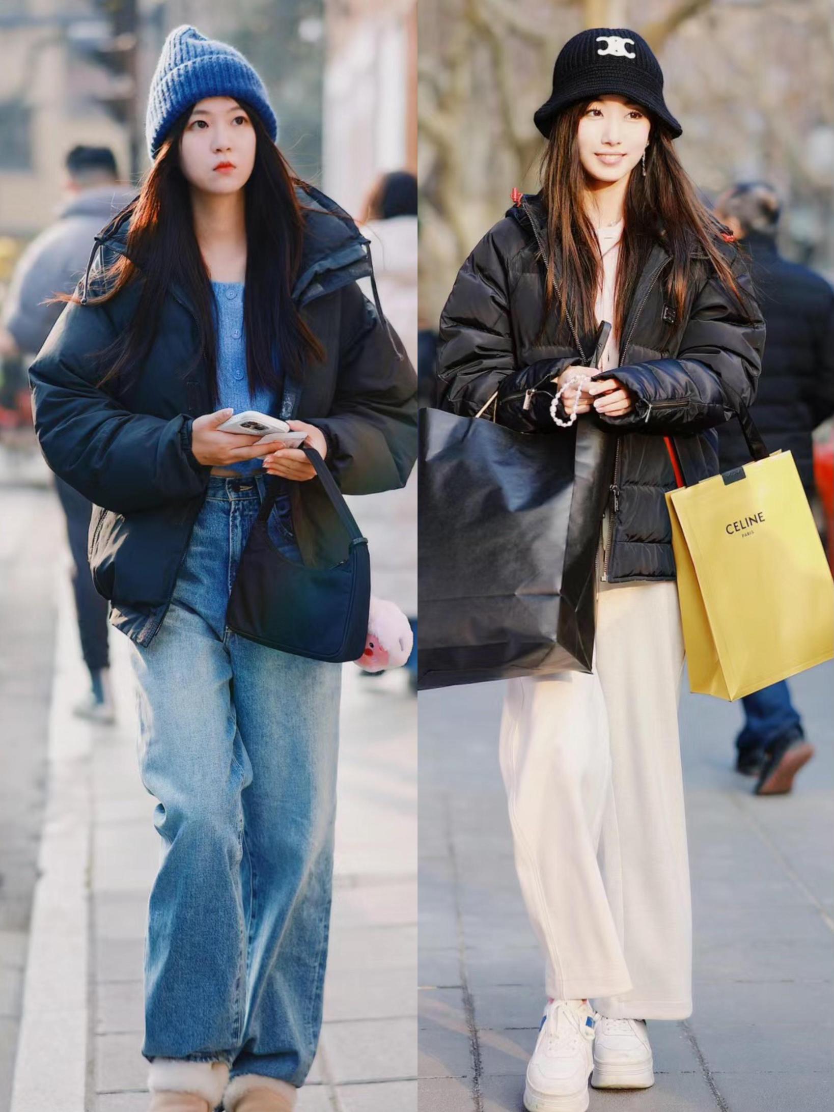 簡單的黑色棉服或者羽絨服,稍微寬鬆的版型穿起來更加舒適。我們可以用短款羽絨服搭配高腰的長褲,表現出大方高級之美。