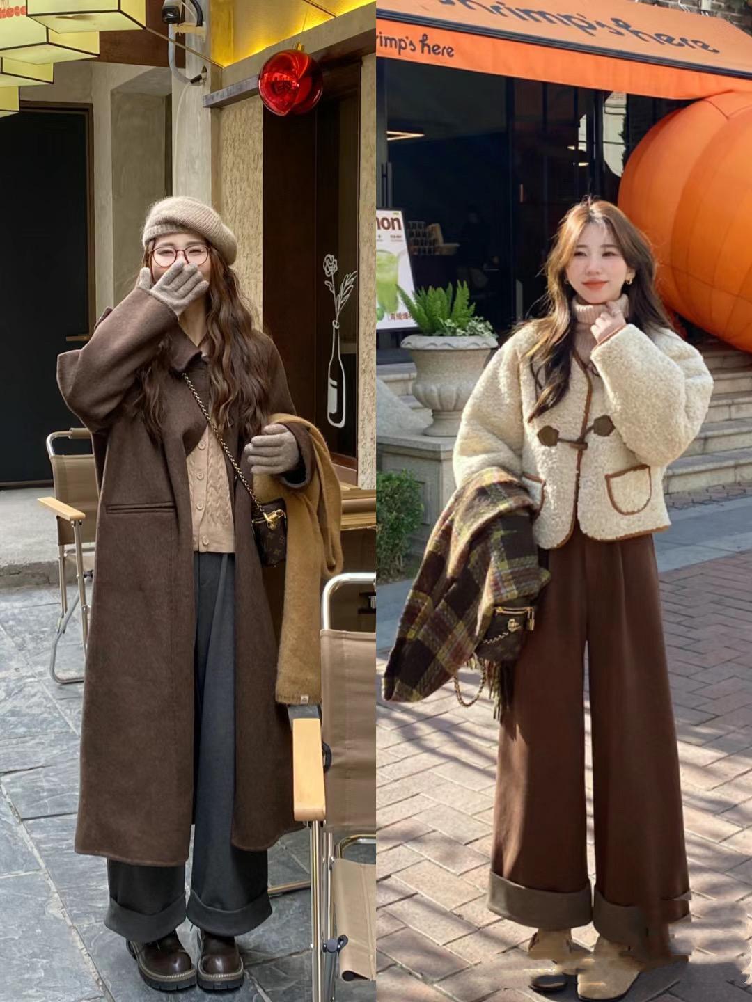 如果你喜歡一種高級大氣的美,也喜歡冬天裏的美拉德風格。我們可以在服裝的配色中融入棕色系,棕色大衣、棕色闊腿褲、棕色帽子、棕色圍巾,都是不錯的點綴。