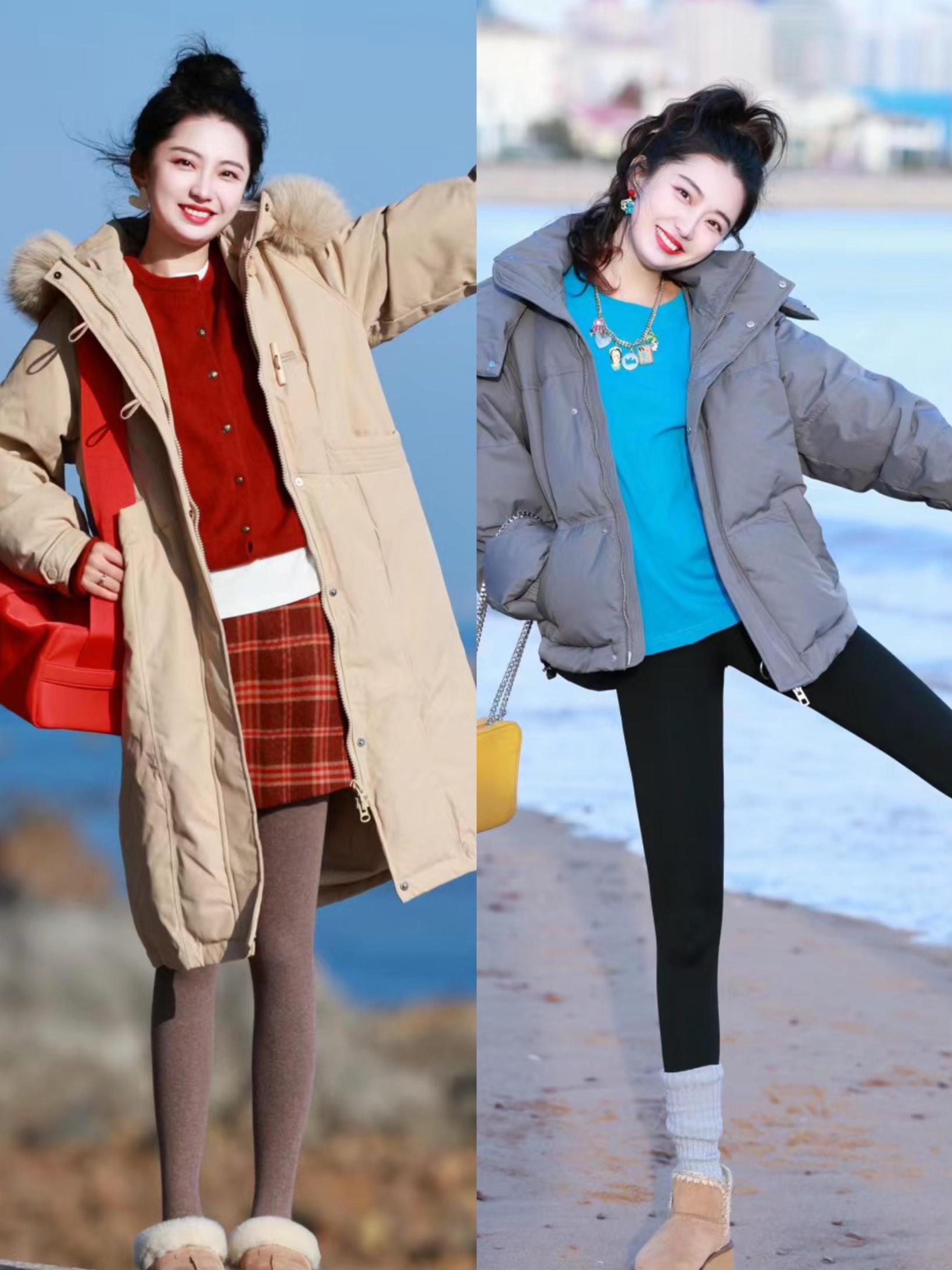 我們用中長款的羽絨服來搭配鯊魚褲,剛好可以露出小腿纖細的線條,顯得穿着者身材更加輕盈。想要層次分明,還可以在鯊魚褲的基礎上搭配亮色系中筒襪。