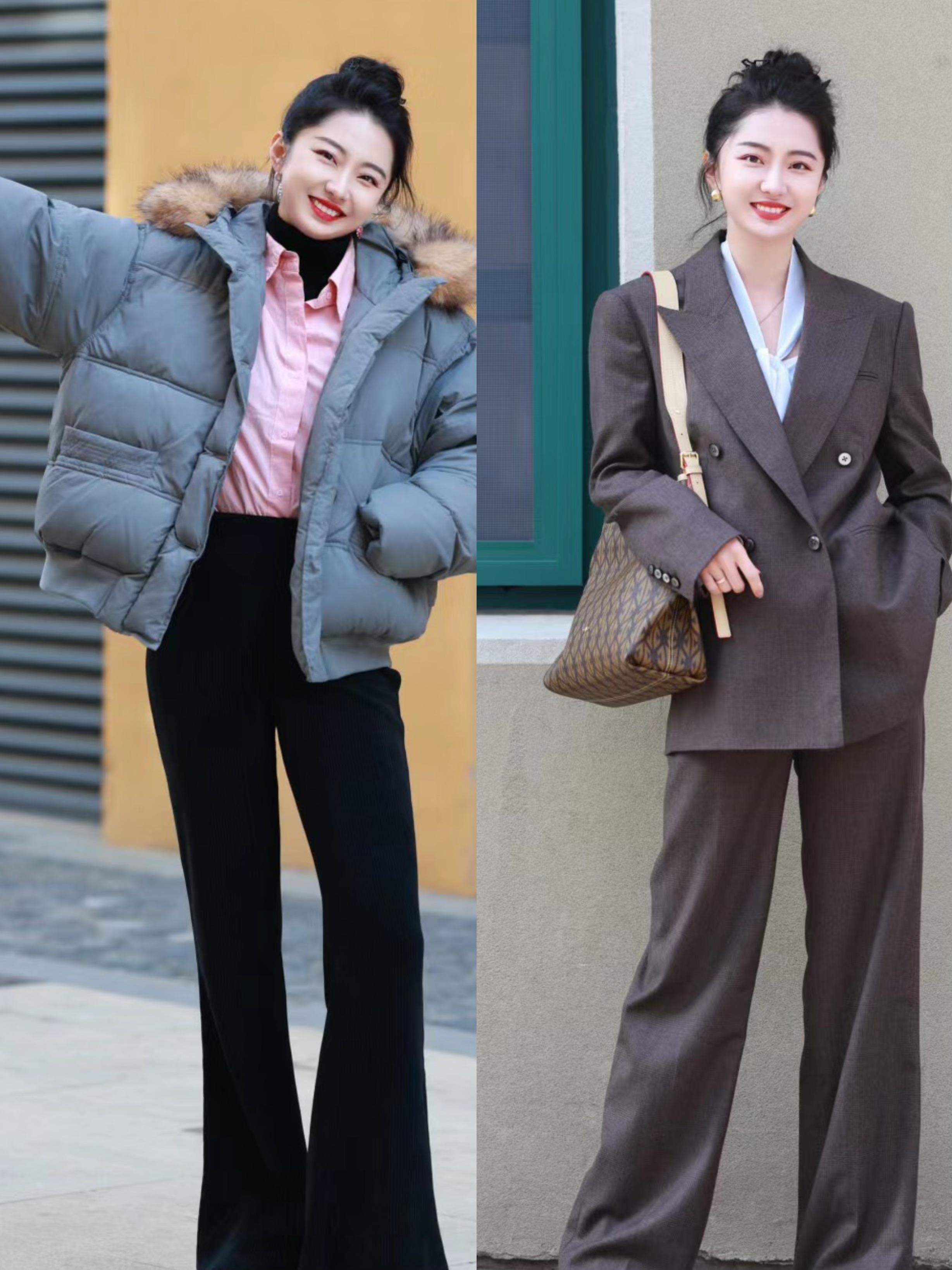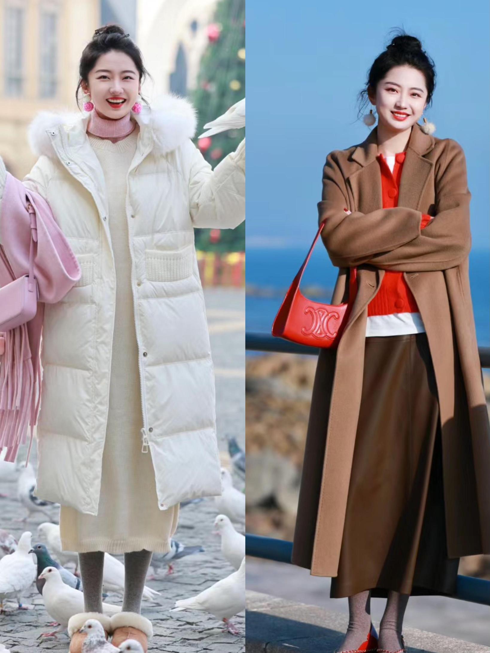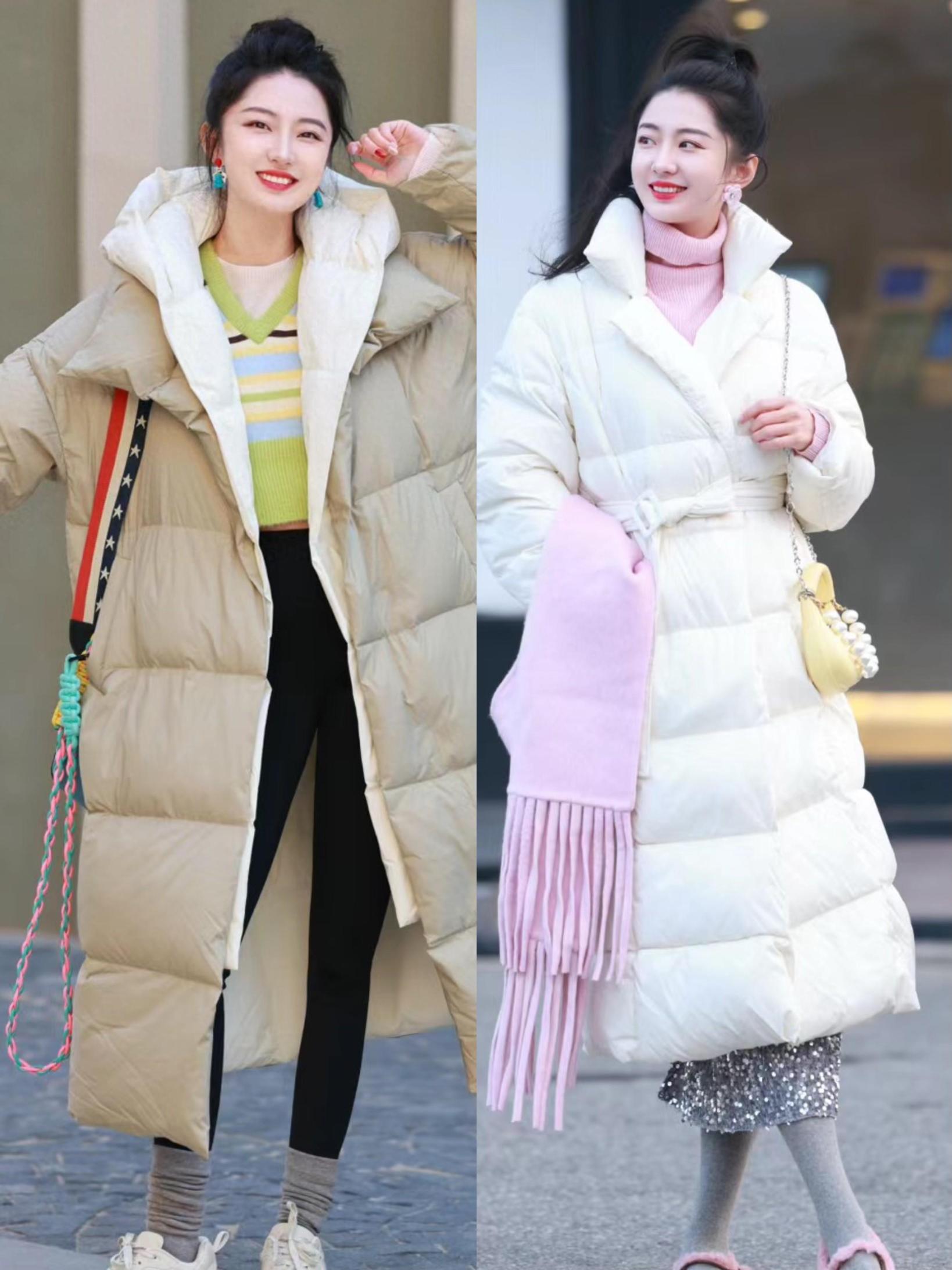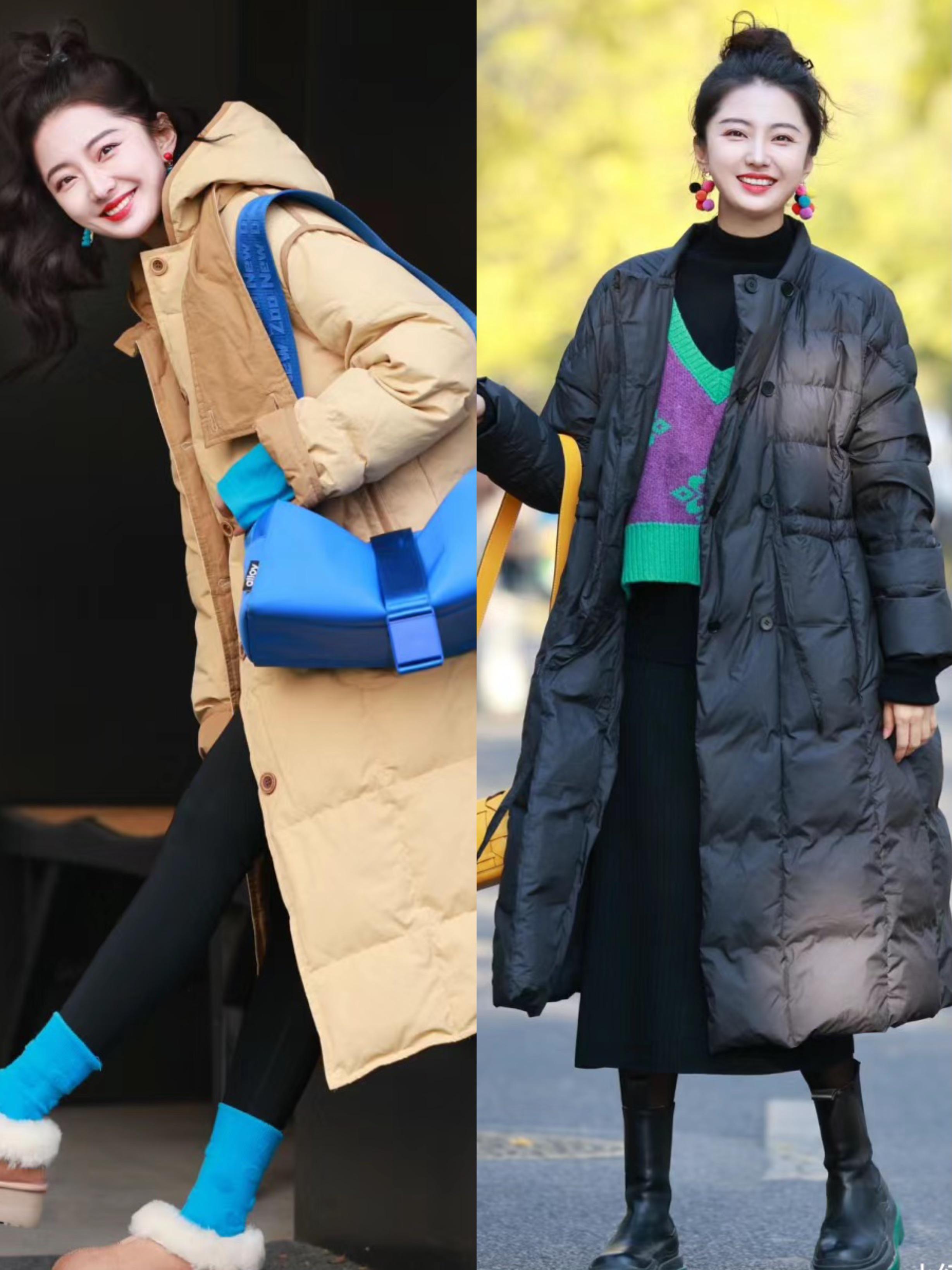 如果想要一種溫暖厚實、又低調大方的穿衣方式。我們可以嘗試中長款羽絨服+鯊魚褲的組合呀,中長款羽絨服選擇過膝的長度,優雅體面。