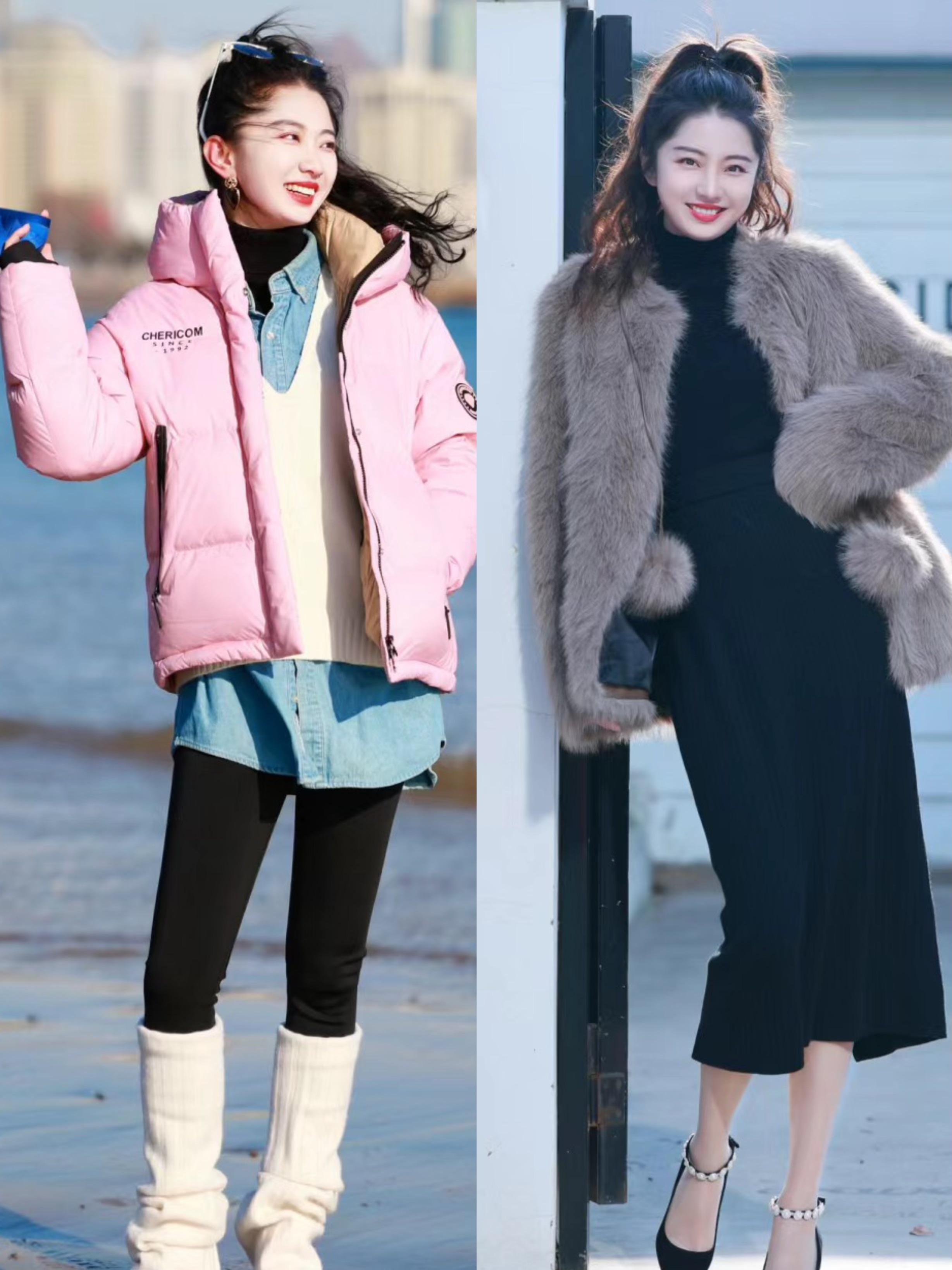 日常的搭配中,我們可以用奢華的皮草外套來配修身的黑色連衣裙。修身黑色連衣裙,可以選擇針織面料,顯瘦又舒適,搭配皮草外套一看就像有錢小姐姐。