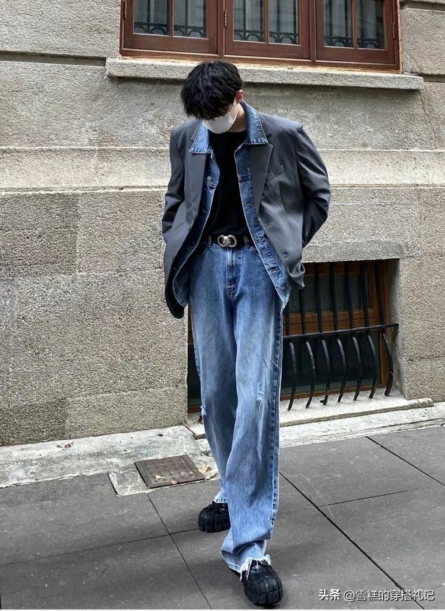 以上這兩種穿搭其實都非常推薦各位男生就可以運用一些對比的色系將其進行分開,尤其是第1種塞腰穿搭將上短下長的標準比例進行一個視覺上的強調,這樣的對比色系可以使其更加的具有明朗和凸顯性一些。