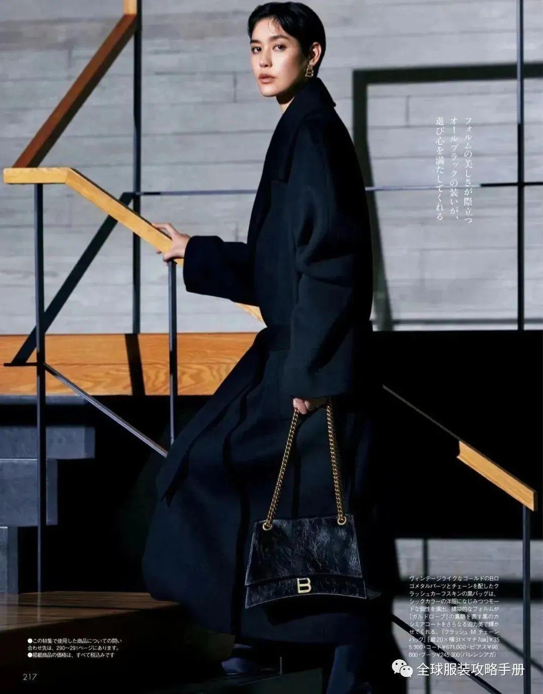 利用起疊穿,保暖又顯層次,在黑色大衣裏面疊攛西裝,再增加包包、飾品點綴,雖然是小面積的點綴,卻很時髦。