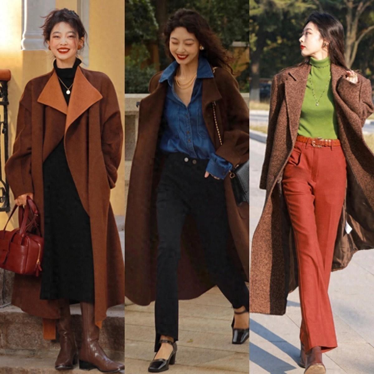 冬天裏的大衣,時髦又顯氣質。一件寬鬆的棕色大衣,演繹出復古風、也更貼近當下流行的美拉德造型。