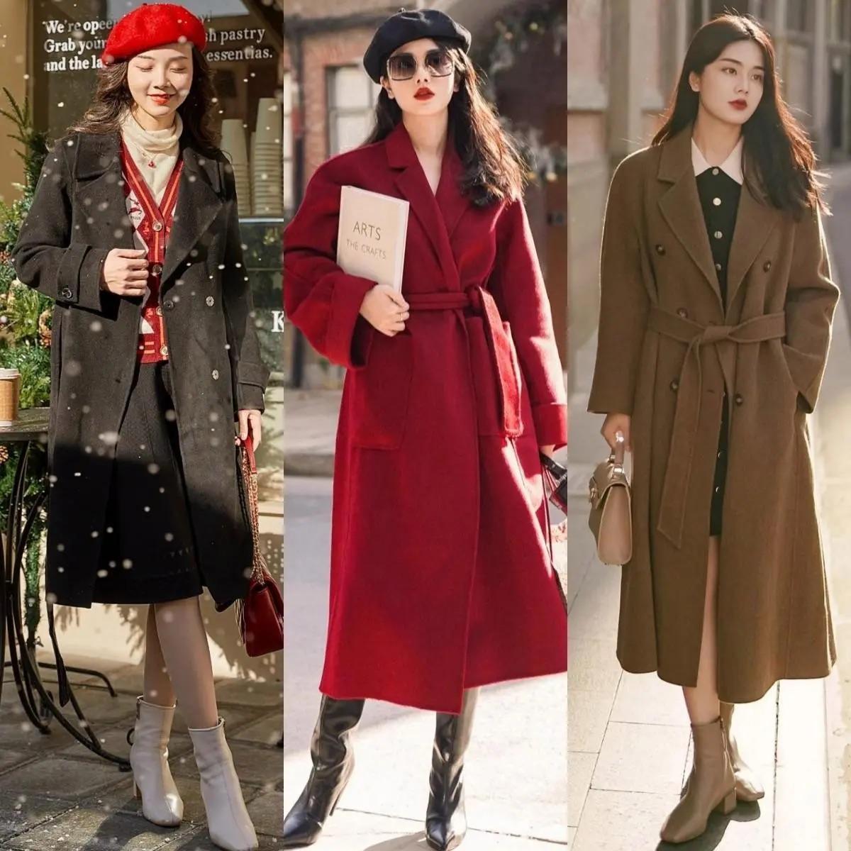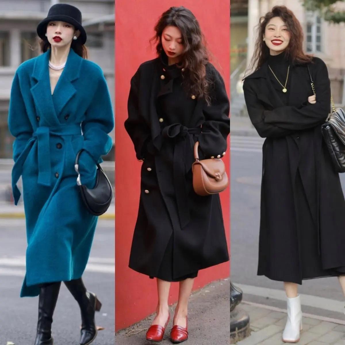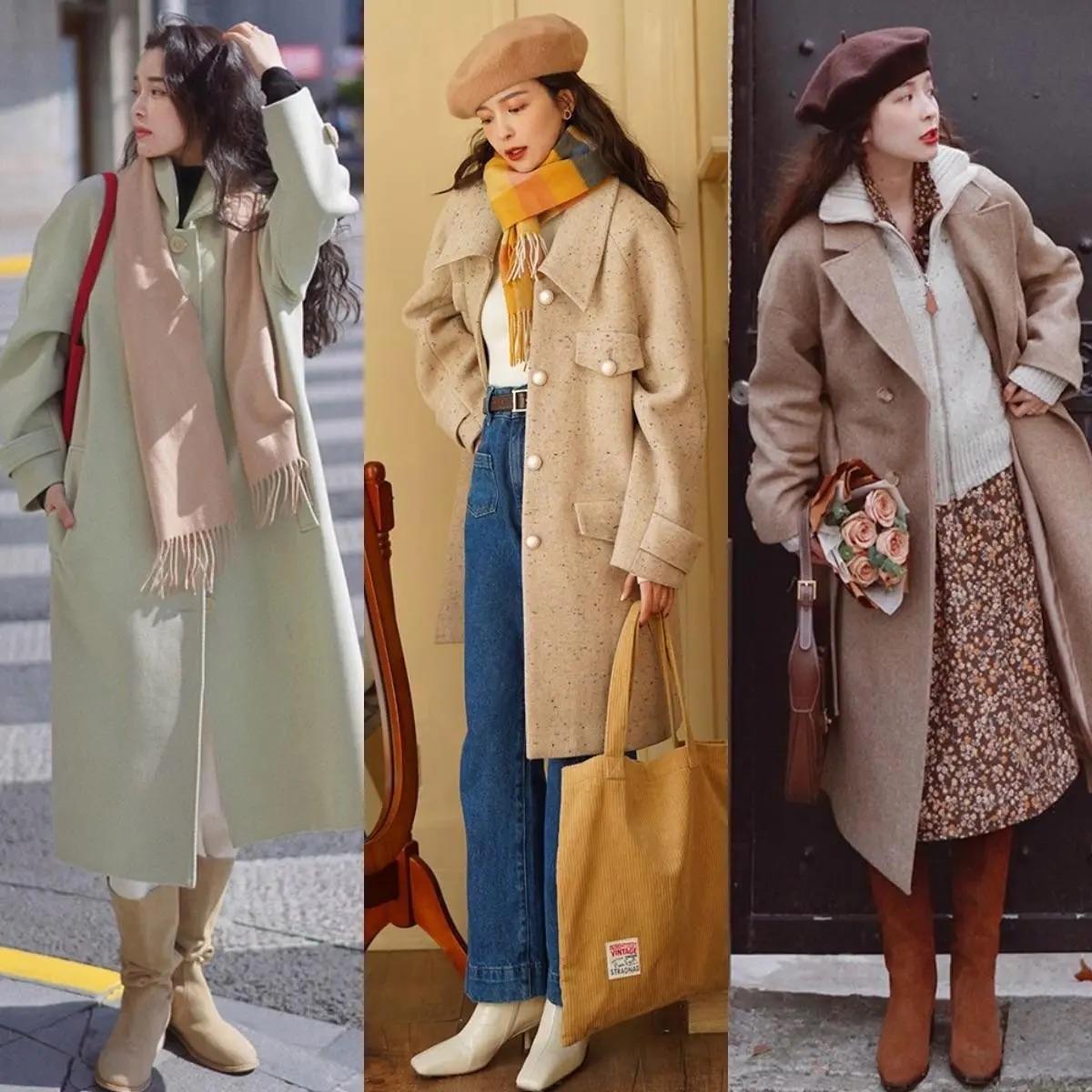 質感高級的毛呢大衣,可以配低跟鞋來穿着。我們選擇露小腿、或者露腳踝的方式,都更加洋氣,搭配精緻的妝容、配飾,可以提升時髦感。