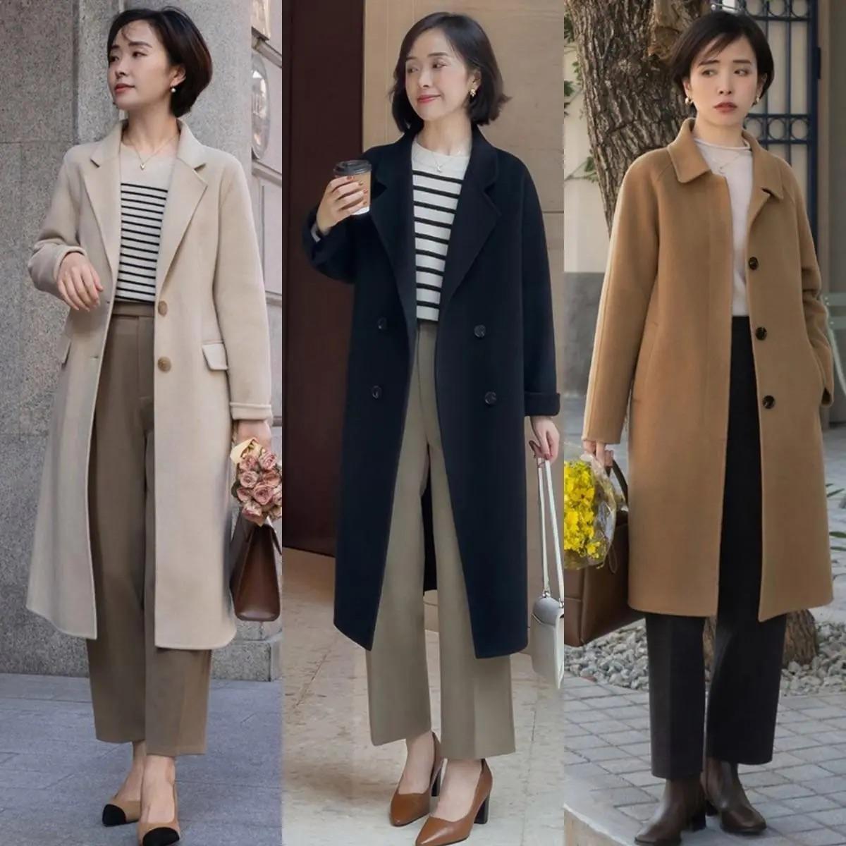 這種剛剛到膝蓋附近長度的大衣,穿起來不挑人、小個子也可以輕鬆駕馭。一條直筒的毛呢褲,面料厚實保暖、防風性更強,搭配低跟鞋精緻耐看。