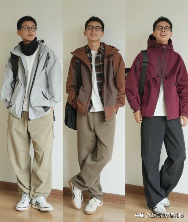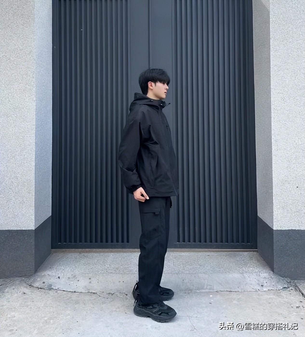 衝鋒衣的上衣選擇有空間的設計,可以幫助你更好的去襯托肩膀的寬度,展示男性獨有的魁梧魅力曲線。就算你的個子不高,上下都要展示出合適的寬鬆線條,男性穿搭不能太過緊身,否則就會顯得很小氣。