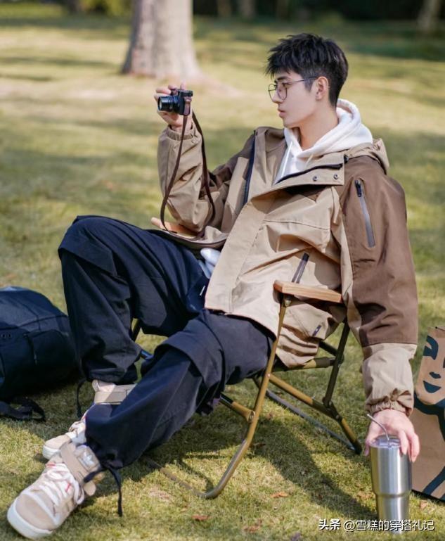運動風的穿法可以展示出色塊拼接的優勢,衝鋒衣的拼接色彩是亮點所在,那你造型更有看點。