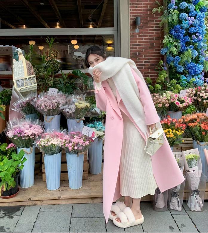 誰說粉色系的單品容易穿出土氣感?那一定是你沒有選對色調了,這件粉色羊絨大衣真的太顯嫩了,軟軟糯糯的材質,穿起來舒服又很有秋冬氛圍感。搭配起白色針織裙,甜美又溫柔,誰穿誰好看~