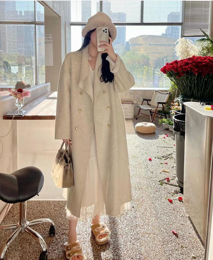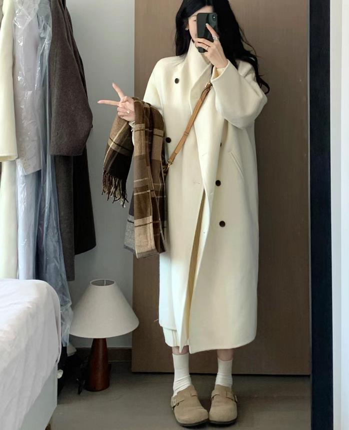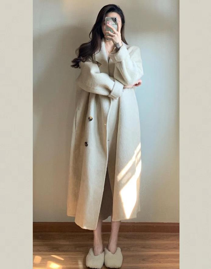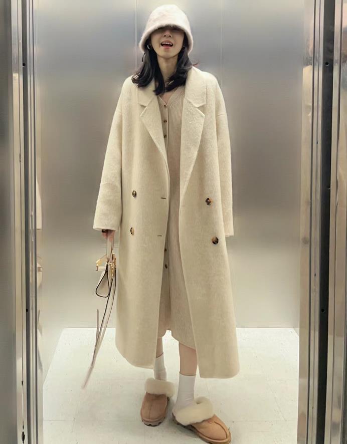 奶白色的大衣,看起來就很喜歡,它這個顏色並不是純白,而是融入了一絲牛奶色,很乖巧低調的色系。