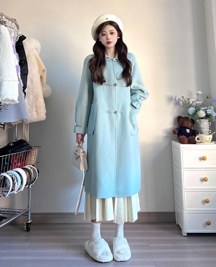 清冷女神那味,實在是太愛了,淺淺的藍色大衣,好喜歡這種顯白的顏色,長度十分合理,剛好過膝的長度,輕鬆遮掩起身上的缺點,顯瘦又不會壓低個子。
