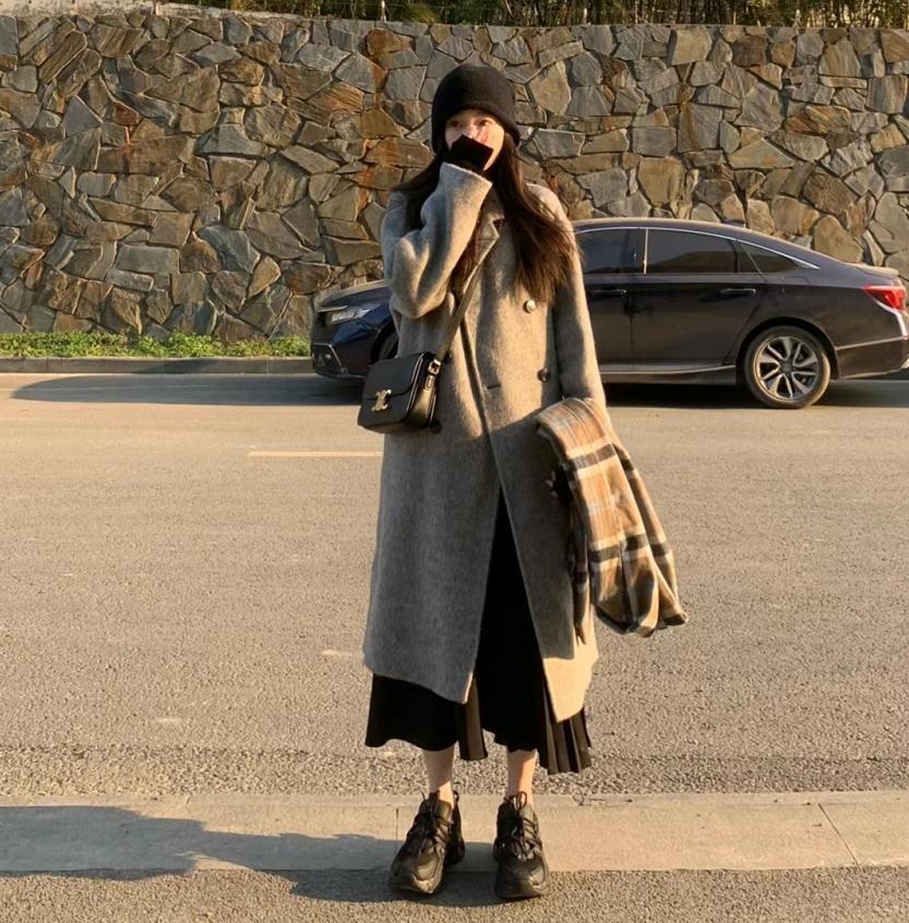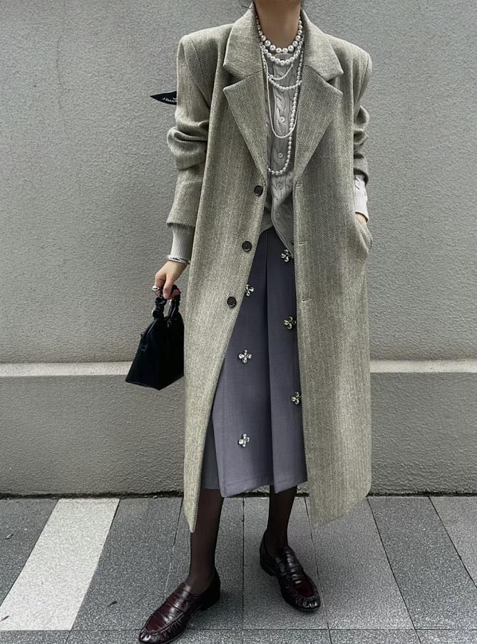 一整套灰色系疊穿,氣質又復古,想要將復古風更好演繹,那麼就選擇一件質感好的灰色大衣,結合起百褶裙後,優雅又好看。