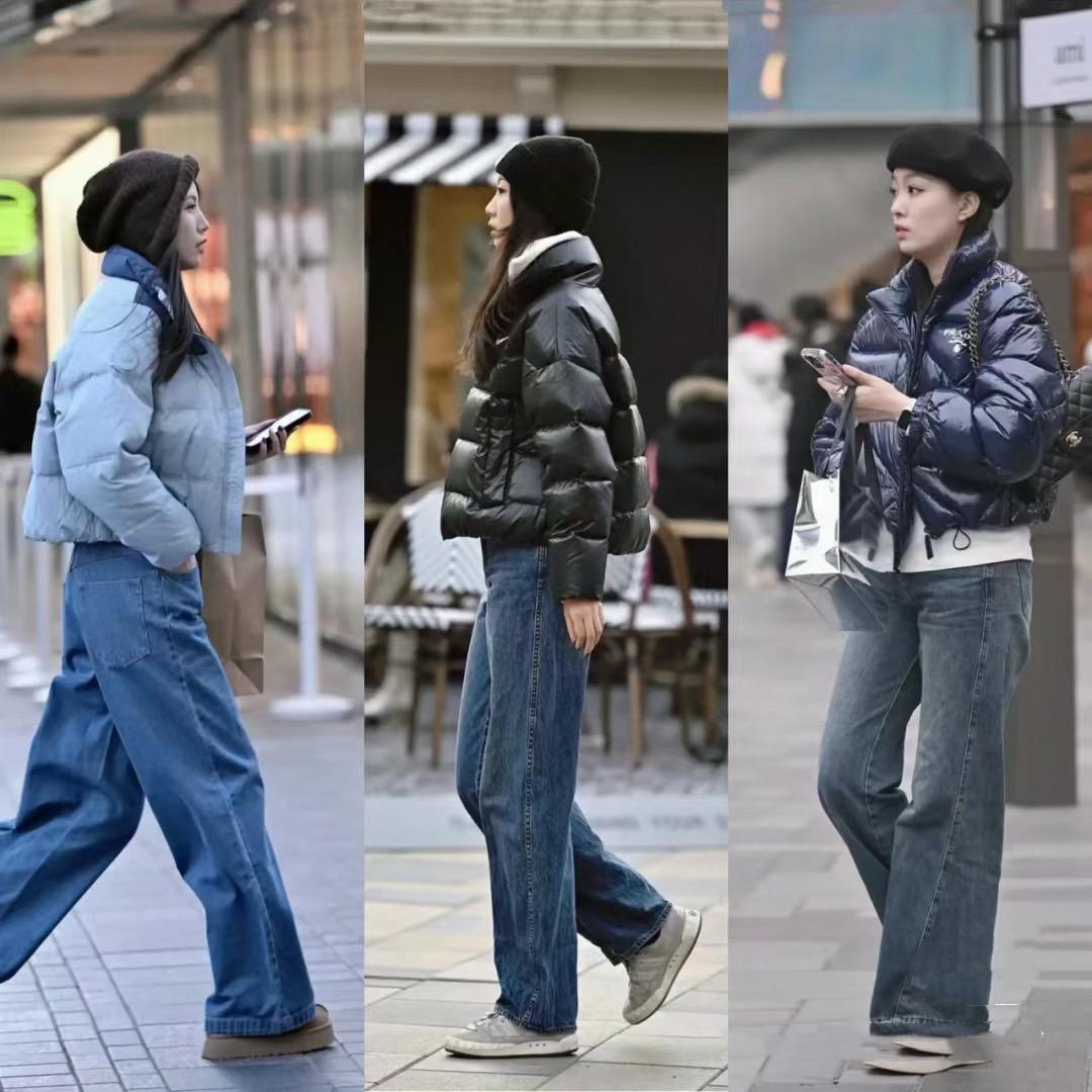 蓬鬆感比較強的短款羽絨服,穿起來舒適又大方。小個子女人可以配高腰的褲子,或者束腳的九分褲,都會更加利落,搭配厚底的運動鞋或者老爹鞋時髦洋氣。