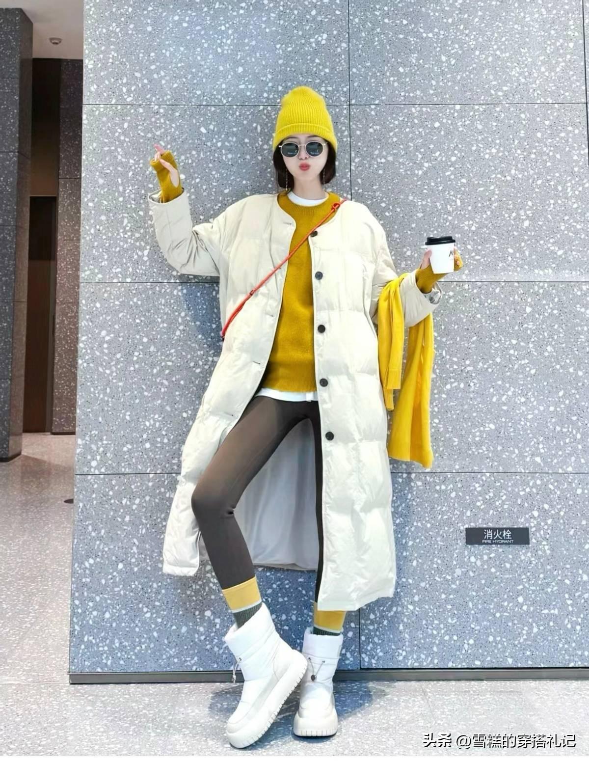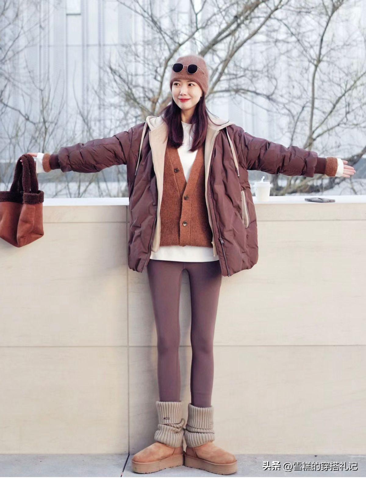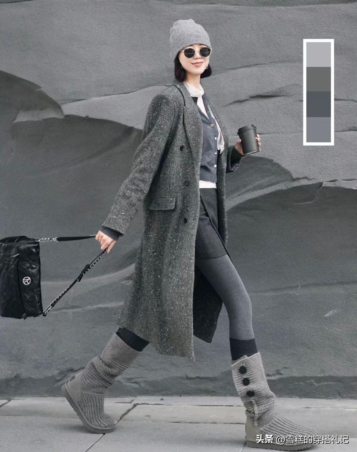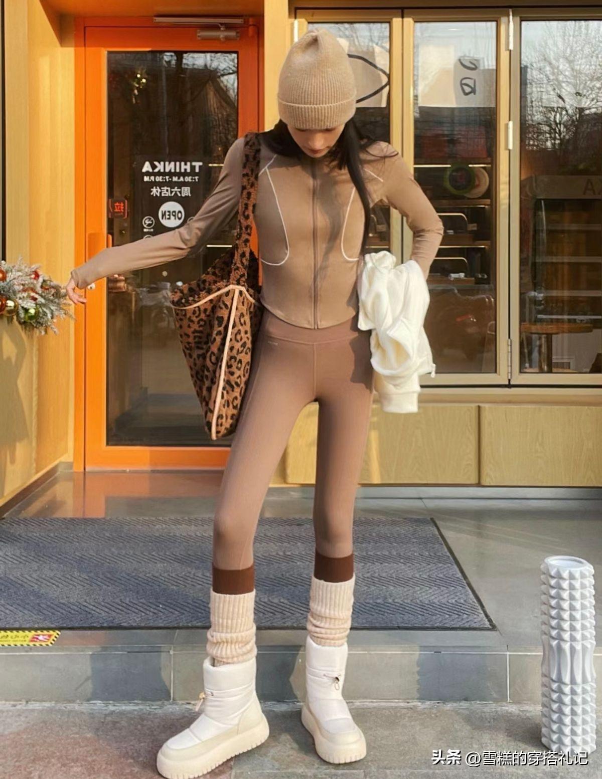 在杭州街拍圖當中不少的女性選擇無痕褲搭配的時候幾乎都沒有搭配平底鞋,更多的都是選擇了厚底鞋以及在冬季當中非常暖和又時尚的雪地靴。所以也在這裏推薦大家可以優先於選擇厚底的版型鞋子與其進行搭配可以進一步拉長腿部線條,營造出更高挑的身材。