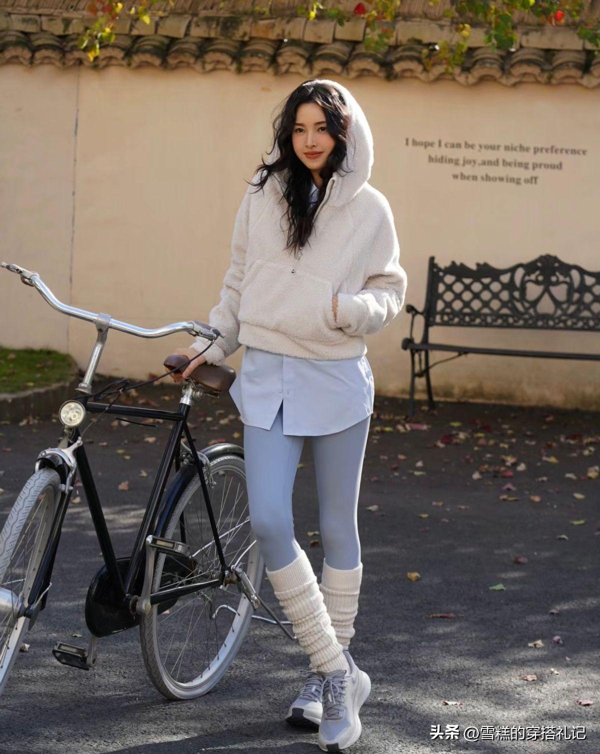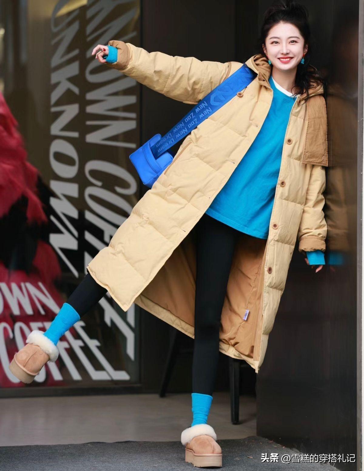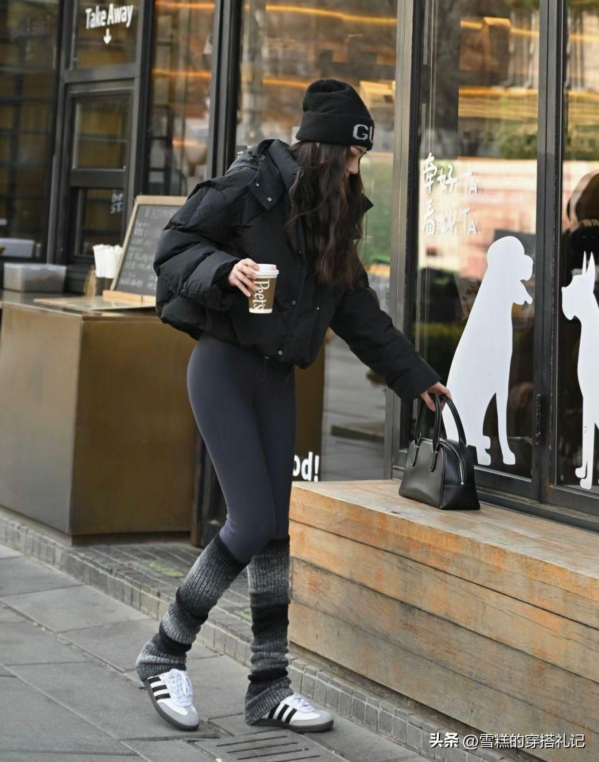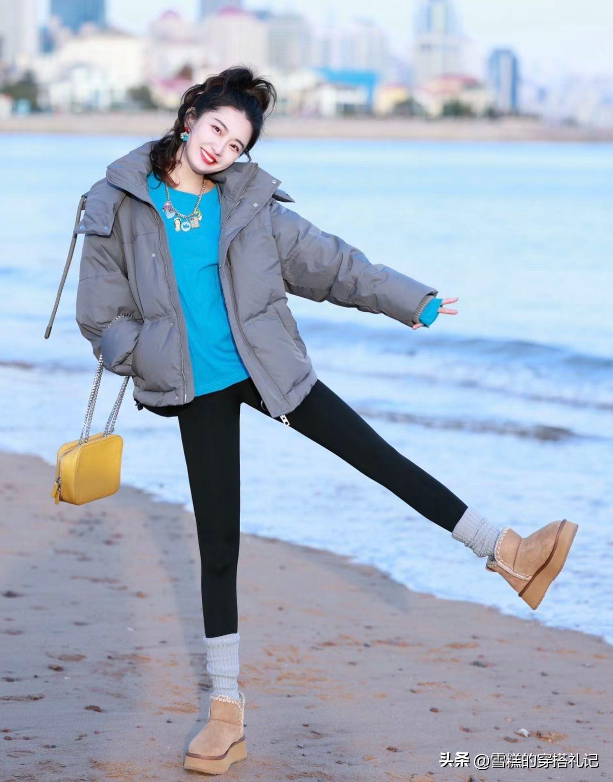 在杭州街拍圖當中不少的女性選擇無痕褲搭配的時候幾乎都沒有搭配平底鞋,更多的都是選擇了厚底鞋以及在冬季當中非常暖和又時尚的雪地靴。所以也在這裏推薦大家可以優先於選擇厚底的版型鞋子與其進行搭配可以進一步拉長腿部線條,營造出更高挑的身材。