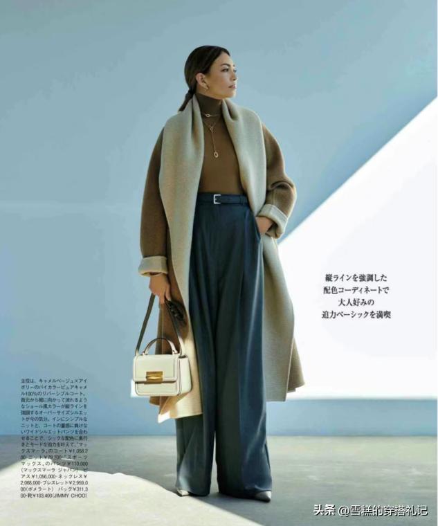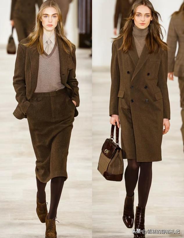 大地色的高級與單品之間的配合有關,建議大家儘量多選一些大廓形大版型的單品,用大地色進行點綴輕鬆分割出標準比例,比如大地色西裝配藍色牛仔褲等等,顯得人更加苗條纖細一些。
