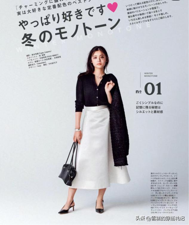 在經典黑白配當中,大家也要注意色塊之間的佔比,黑色爲主,白色爲輔助時整體風格會更加成熟穩重一些,適合出席一些正式場合,白色爲主,黑色爲輔的話,整體會更加輕盈,看着更加幹練利落。