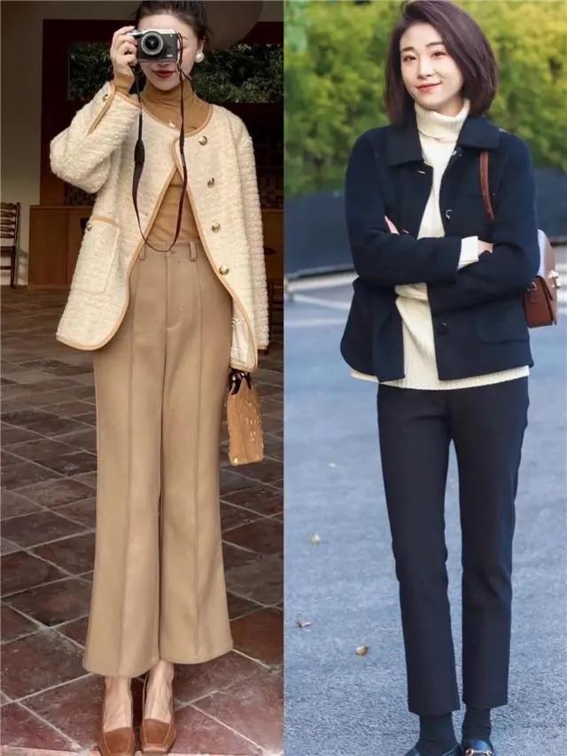 比如三五釐米高度的高跟鞋,可以搭配酒杯跟或者粗跟方根的款式,尤其是厚底短靴的搭配,才精緻洋氣。配一條毛呢煙管褲,簡簡單單就很大方,冬天裏的毛呢煙管褲很體面也很大方。