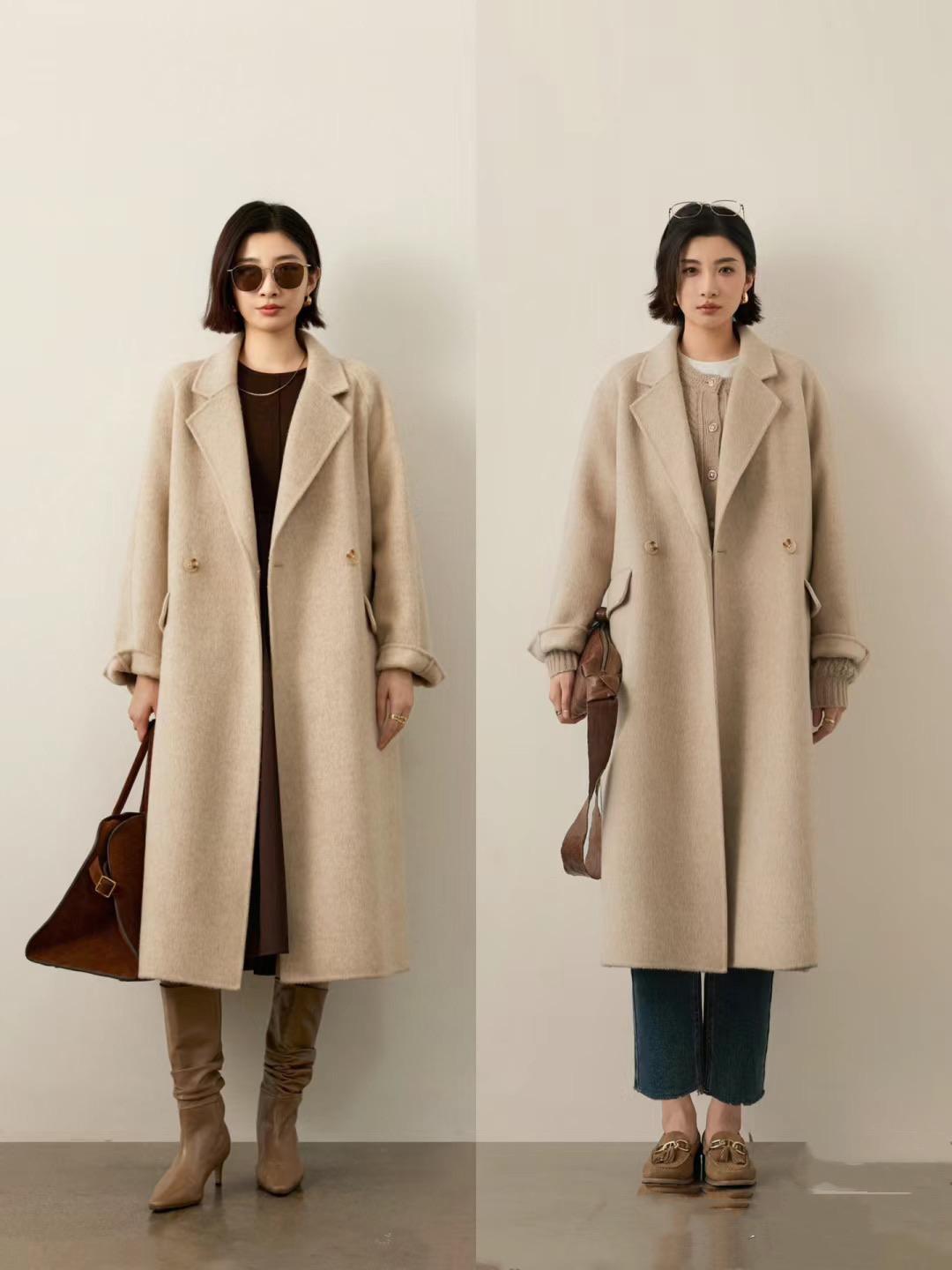一件燕麥色的大衣,可以搭配同色系的鞋子,溫柔又端莊。想要更輕盈一些,搭配九分的直筒牛仔褲,露出腳踝位置時髦顯高。九分直筒牛仔褲的搭配,也會更加高級。