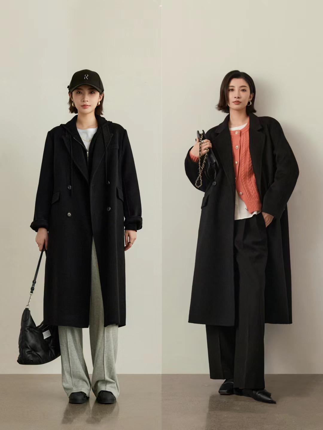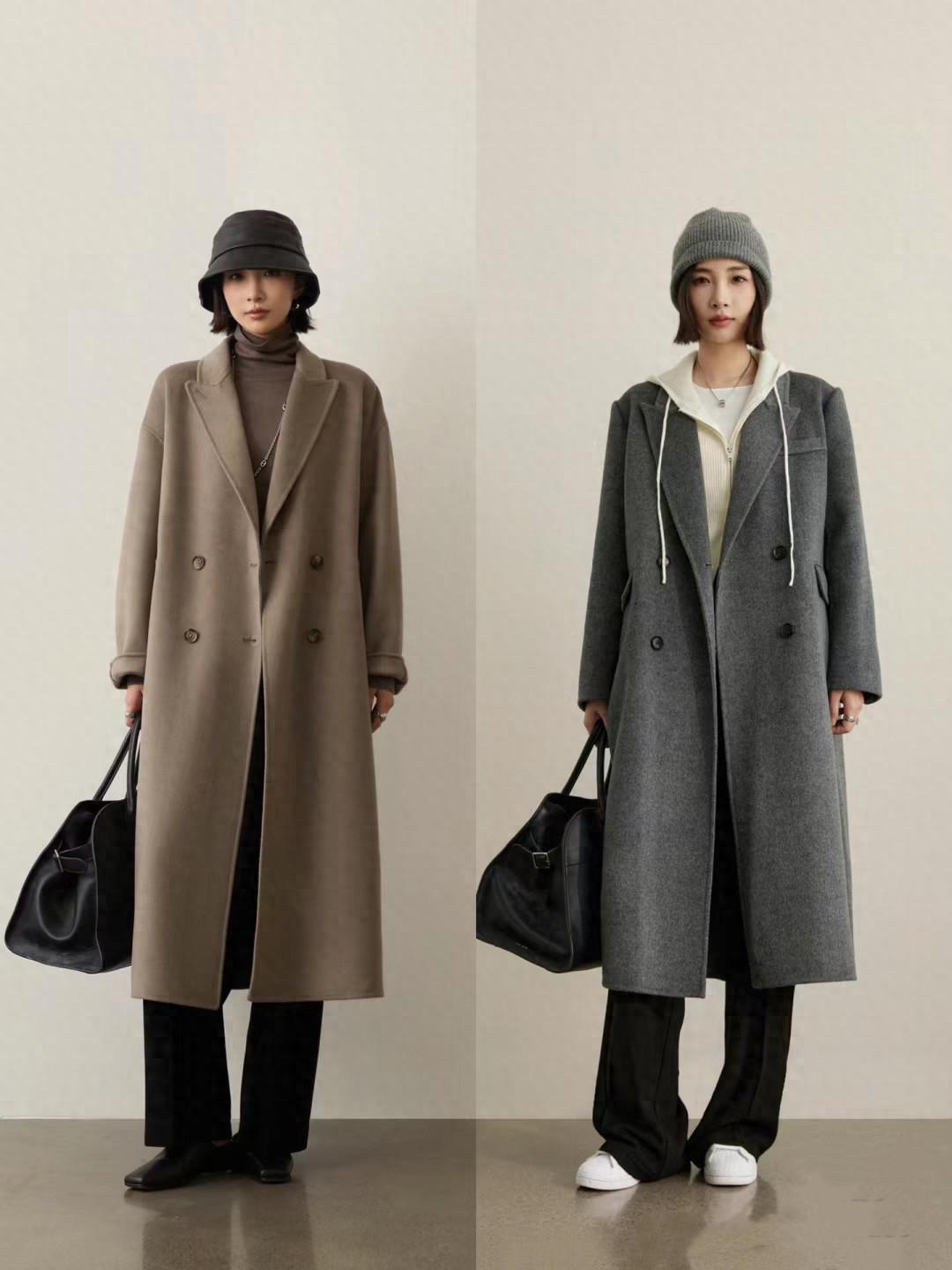 我們穿一件基礎款的大衣,越是經典大方的款式、越適合搭配高級感單品。衛衣體面度不夠,屬於日常休閒風格,與大衣的搭配有一種混搭的效果,自然是不夠高級體面。