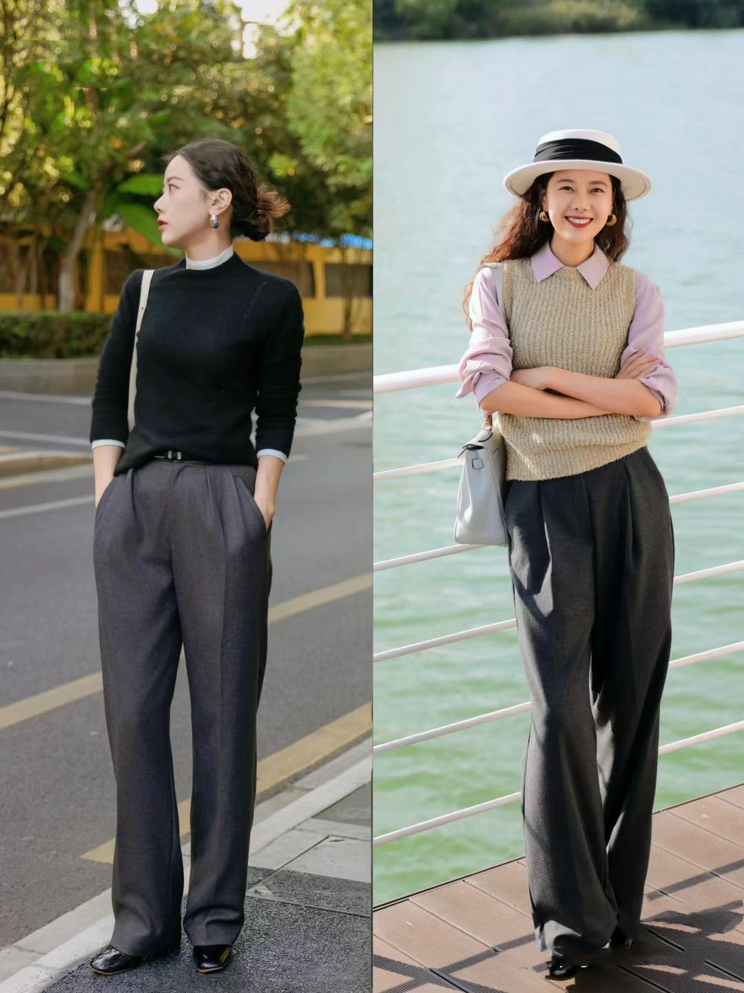 西裝褲是大女人風格的代表單品,寬鬆的褲筒、可以日常穿着、也可以通勤穿着。即便身材上有一點不足,也可以通過寬鬆的褲筒來掩蓋,呈現出端莊大氣之美。