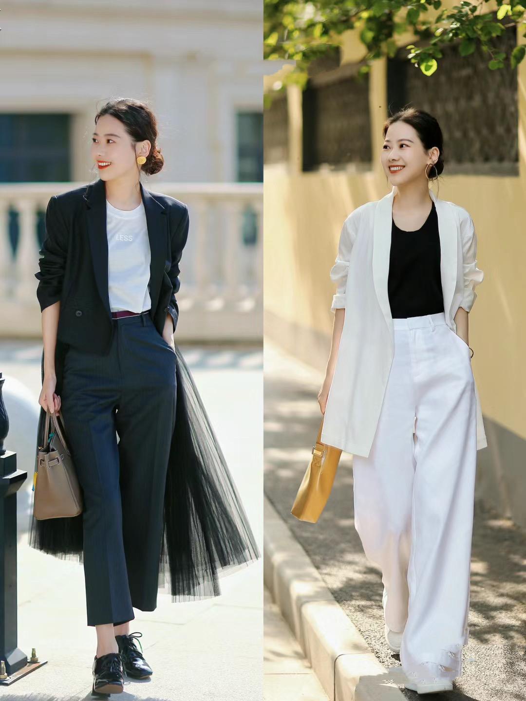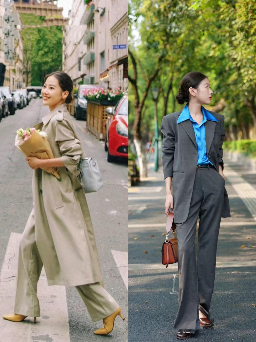 與小黑褲的緊緻修身不同,西裝褲具備了更強的包容性。寬鬆的褲筒、更加舒適拉風一些。日常逛街搭配一件風衣外套、又酷又美。上班通勤配西服外套,精緻利落。