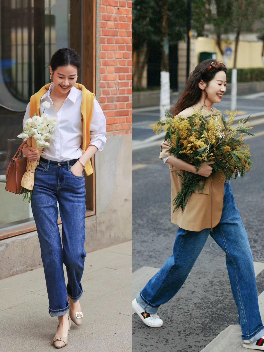 選擇牛仔褲的時候,我們可以搭配最經典的直筒牛仔褲。或是稍微寬鬆的版型、或者稍微修身的版型,都可以塑造出鬆弛有度的穿衣效果。