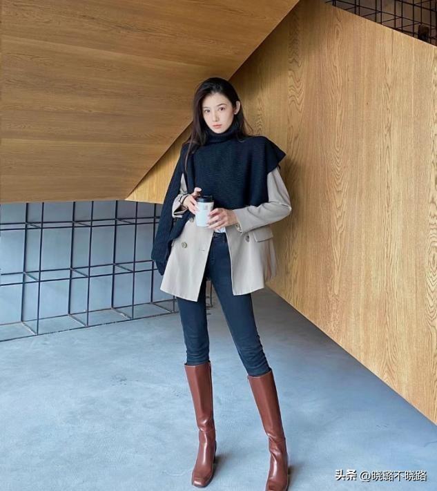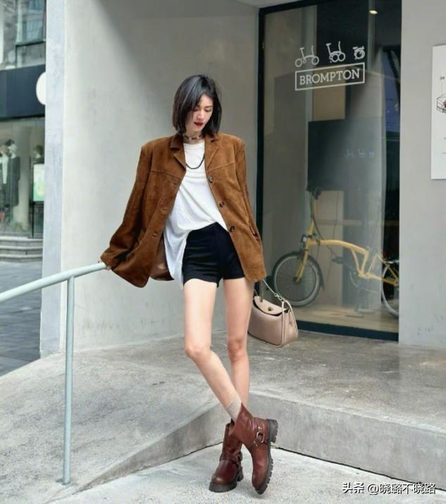 上衣如果能夠恰當的去縮短位置,那麼西裝和毛呢羊羔外套是最百搭的選擇,特別是在穿超短裙超短褲的時候,視覺上可以秀出更多的腿長,穿泥靴只需要選擇顏色的相互協調,整體的氣質都可以翻倍。