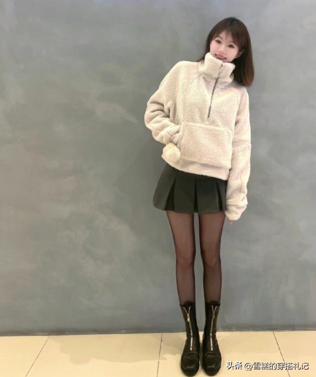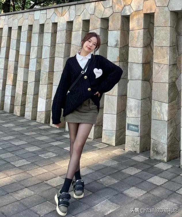再回到讓我們不能割捨的冬季疊穿設計上來看,短裙設計的立體度,一樣是需要疊穿感來展現的,比如說上衣羽絨服疊加毛衣,敞開的穿法可以露出短裙打造的腰線,穿搭黑絲豈不是更顯腿長了嗎?