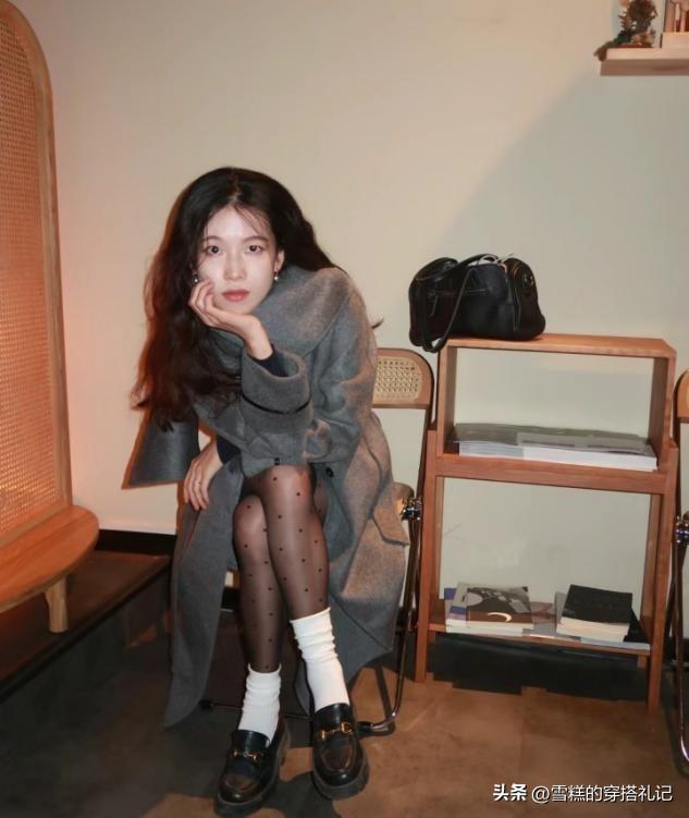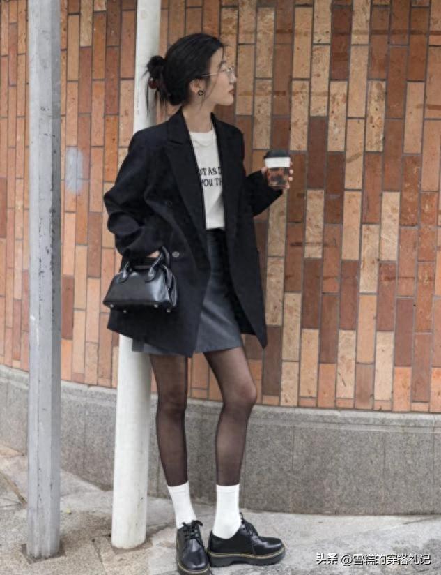 ②深淺搭配組合,黑絲的深色不顯腿粗