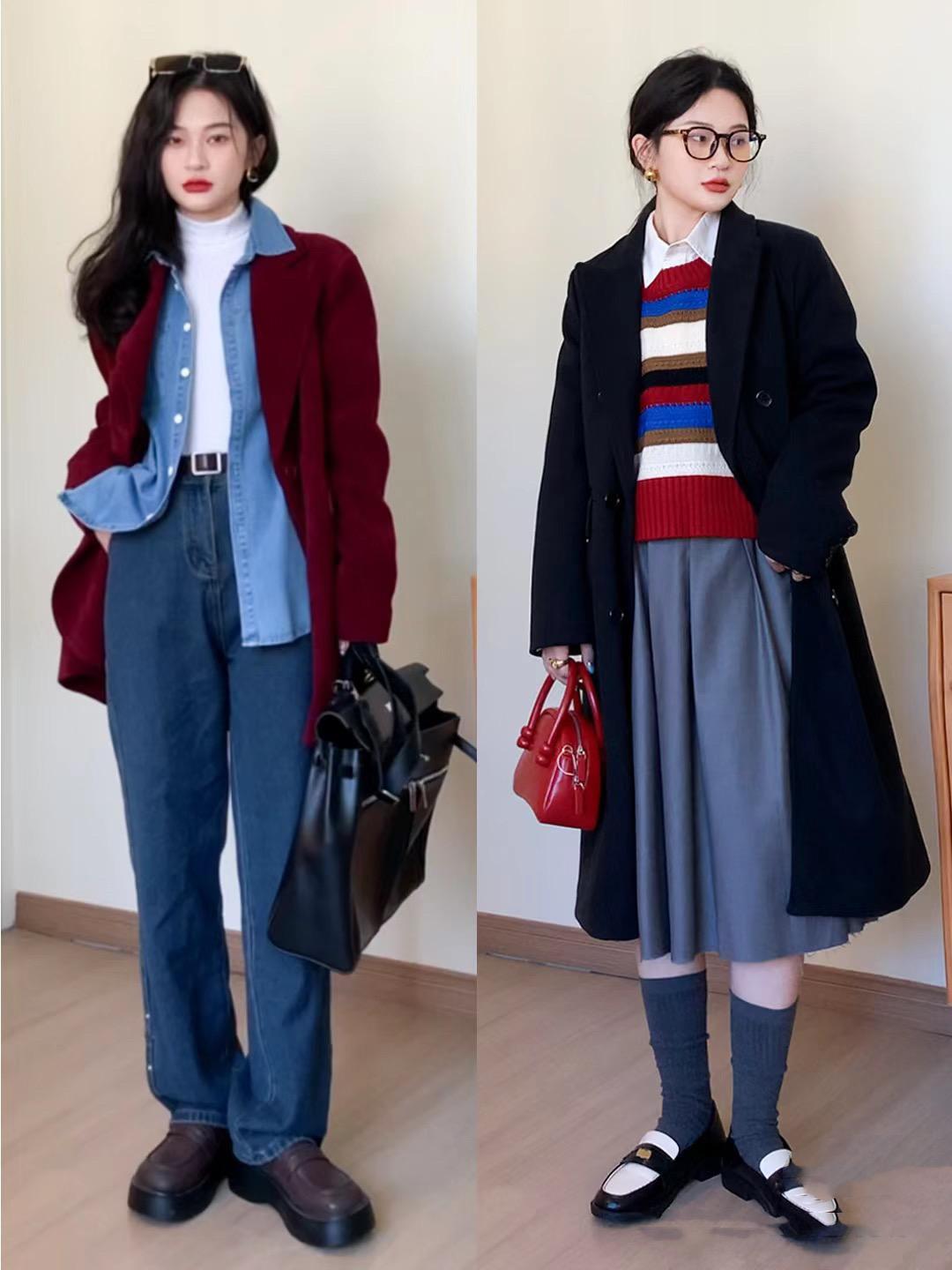 棗紅色,是一種飽和度比較高的紅色系,亮度沒有那麼高,穿起來更加雅緻顯白。自古紅藍出CP,即便是棗紅色,也可以搭配經典的牛仔藍。