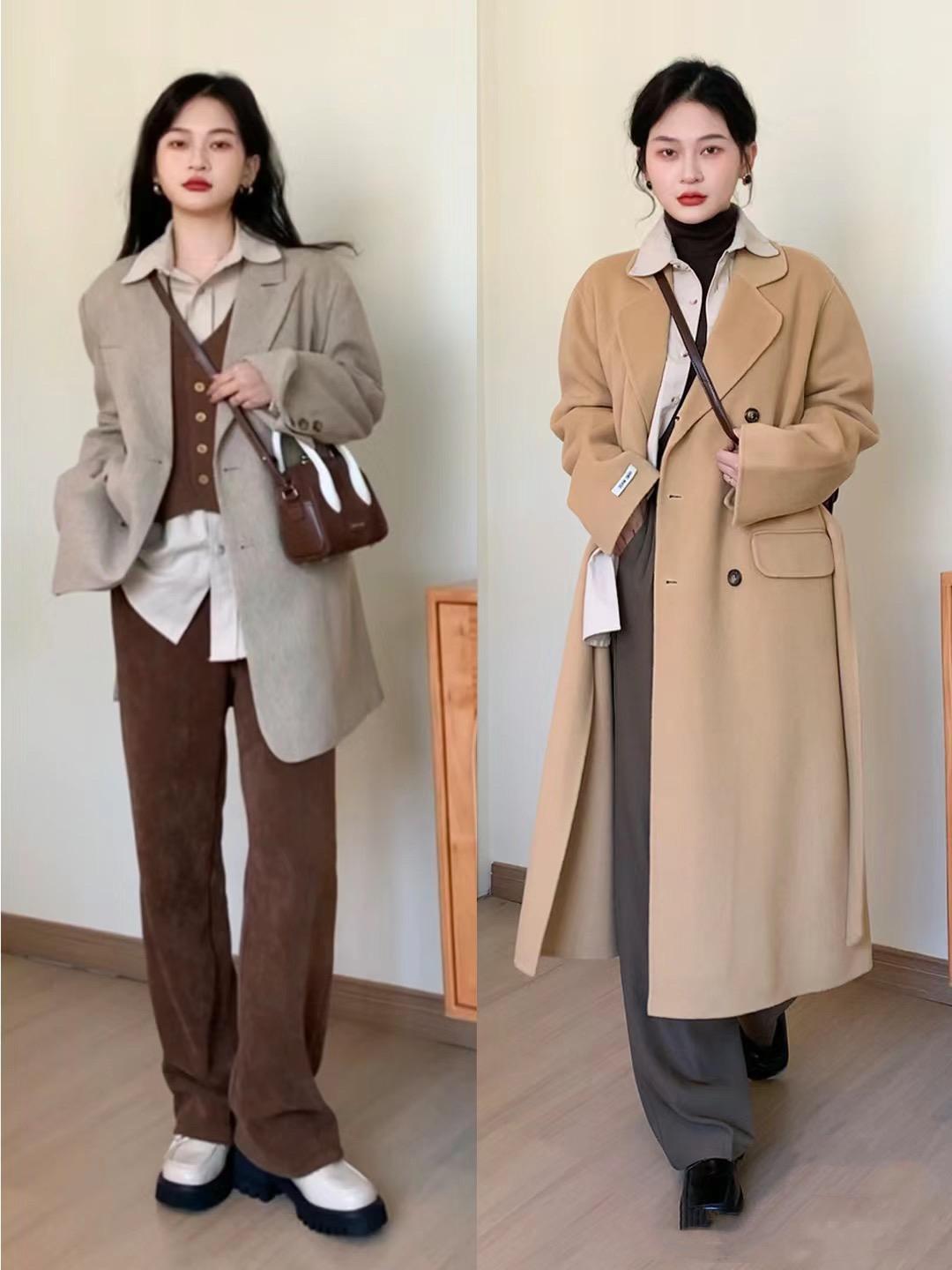如果覺得長款大衣有一種盛氣凌人的感覺,我們可以選擇稍微日常一點的毛呢西服外套。厚重一點的毛呢西服外套,穿起來優雅又體面。