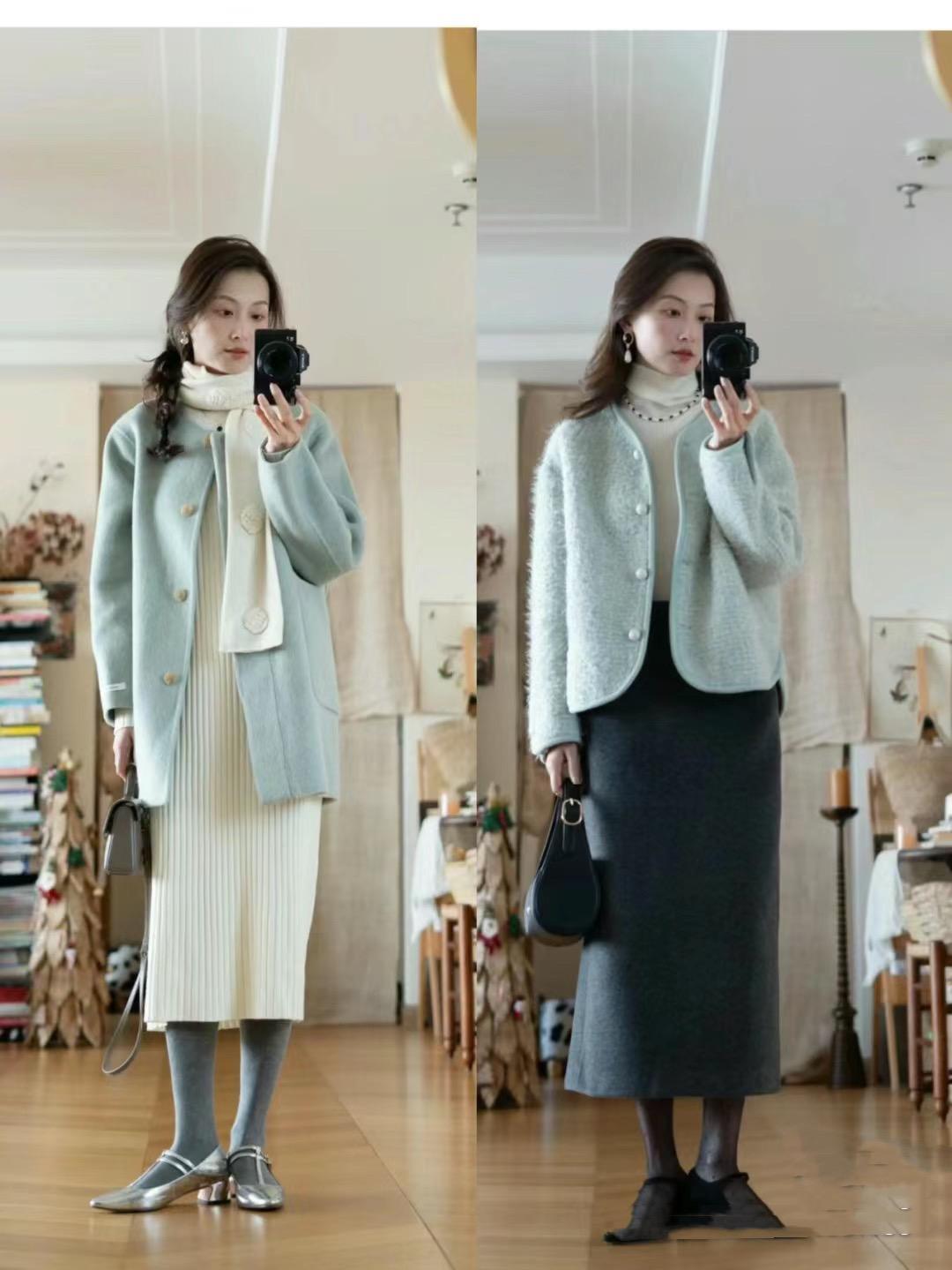 溫柔又大方的穿衣方式,依然是打工人必備的穿搭技能。一件中短款的毛呢外套,我們可以搭配直筒的半身裙,穿起來簡單利落、時尚高級。
