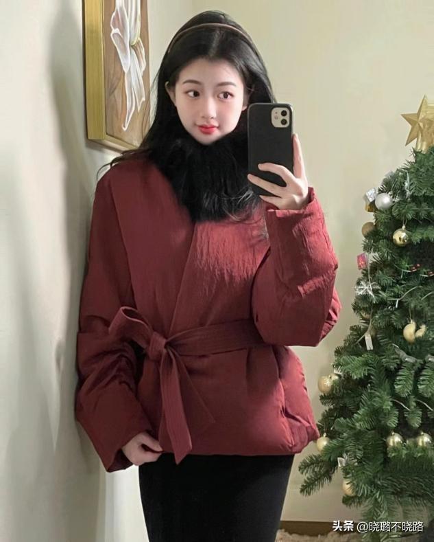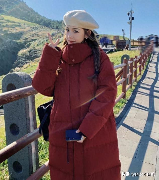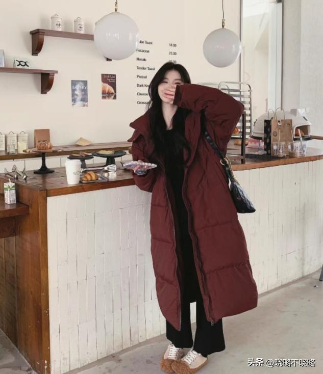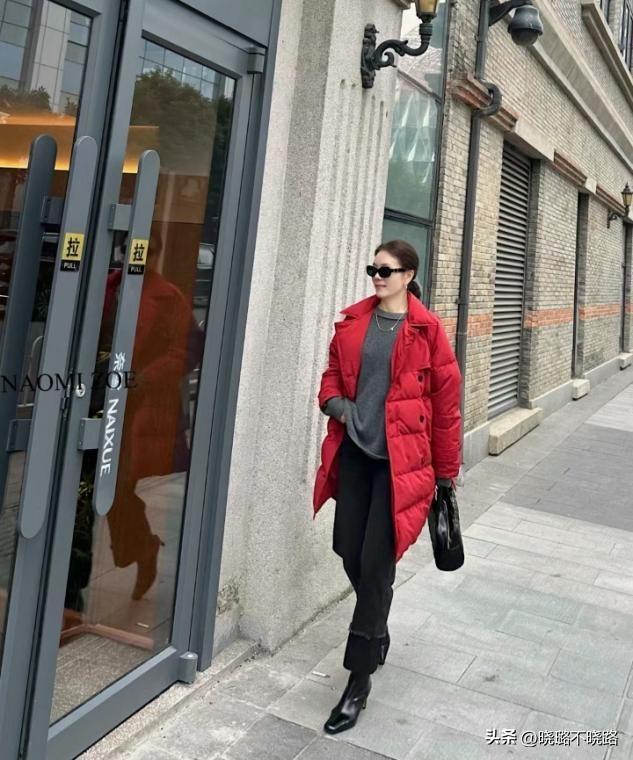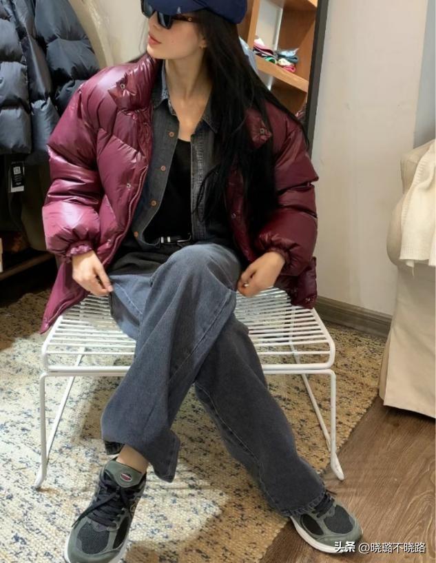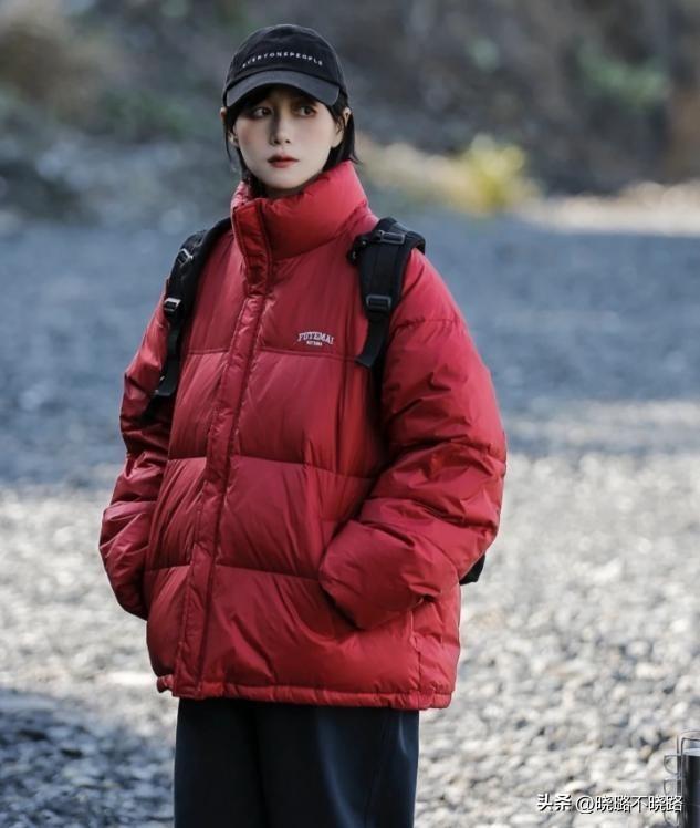 蓬鬆羽絨服的慵懶感,藉助棗泥色來作爲點綴的話,色系可以偏淺一些,尤其是紅色系減少一些,穿深色系的內搭,可以優化身形曲線,偏胖的女生也可以這樣穿。