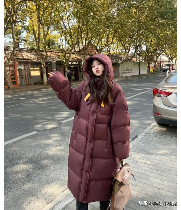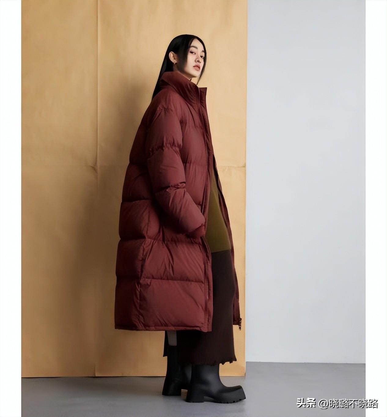 ○蓬鬆羽絨服加長款適合淺色調棗泥色,深色內搭優化線條