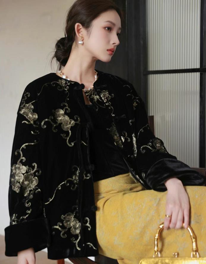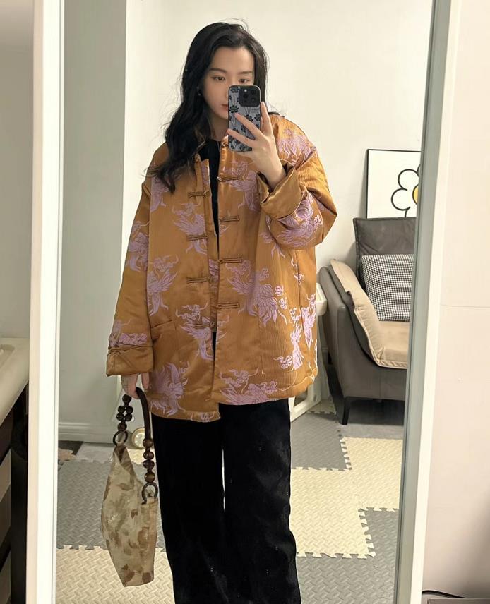 中式老錢風穿搭,真的是誰穿誰好看,美得毫不費力,你可以永遠相信中國人的浪漫審美。富貴金珠+真絲材質厚棉服,精緻的工藝打造,保暖又華麗。