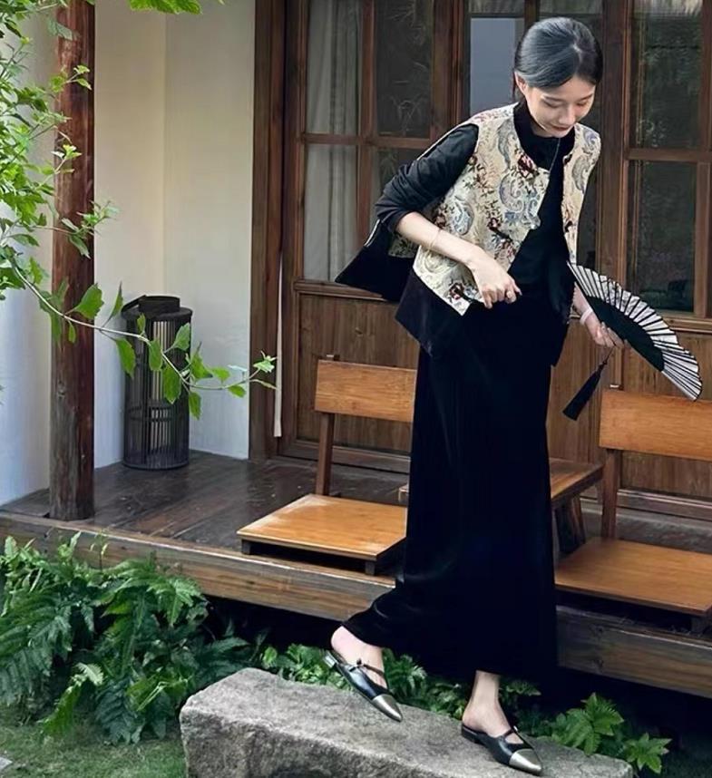 適合小個子女生的中式老錢風穿搭,很精緻大方又顯貴氣,雖然整體的主色調是黑色,但一點都不沉悶。因爲衣服上面的花紋和刺繡都十分精美,彰顯出高級感。
