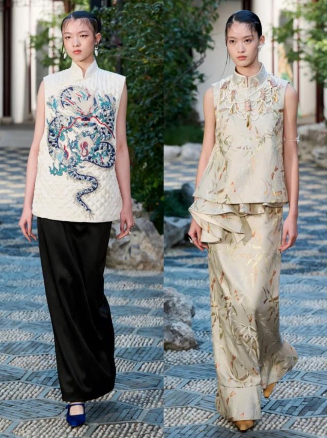 中式老錢風穿搭,更多追求的是精巧工藝,它的版型變化不多,主要依靠不同的刺繡和麪料帶來新鮮感。